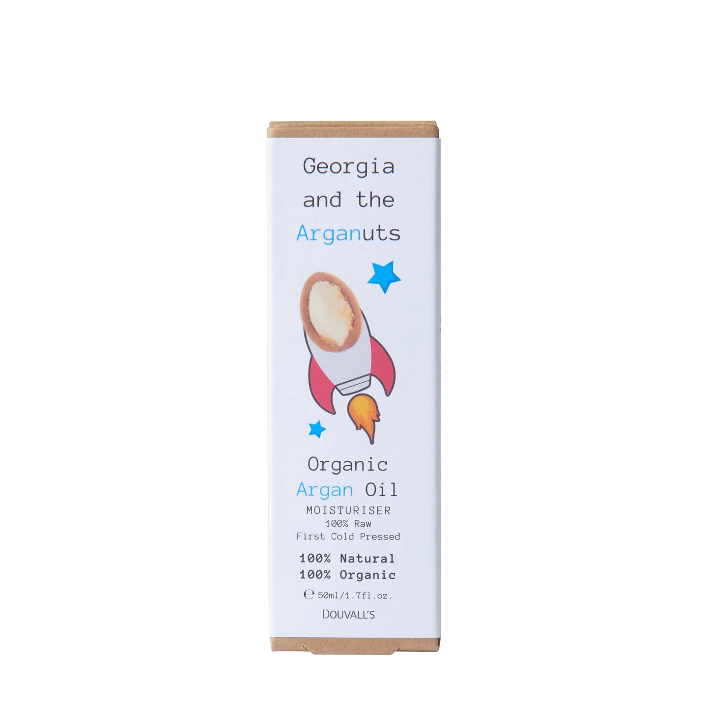 Georgia and the Arganuts Children's Organic Argan Oil Moisturiser, a natural and gentle solution to nourish and protect your baby or child's face, body, and hair. Specially formulated with the purest Eco-Certified, Organic Argan Oil, known as "liquid gold" in Morocco, this multi-tasking moisturiser is fast-absorbing, lightweight, and brimming with vitamin E, essential fatty acids, and antioxidants. Georgia's Argan Oil deeply hydrates, nourishes, and repairs even the most delicate of skin. The natural properties of this precious oil soothe and calm sensitive skin, making it perfect for bedtime baths, gentle massages, and as a soothing treatment for cradle cap. Additionally, it helps to prevent and calm nappy rash, ensuring your little one stays comfortable and content.