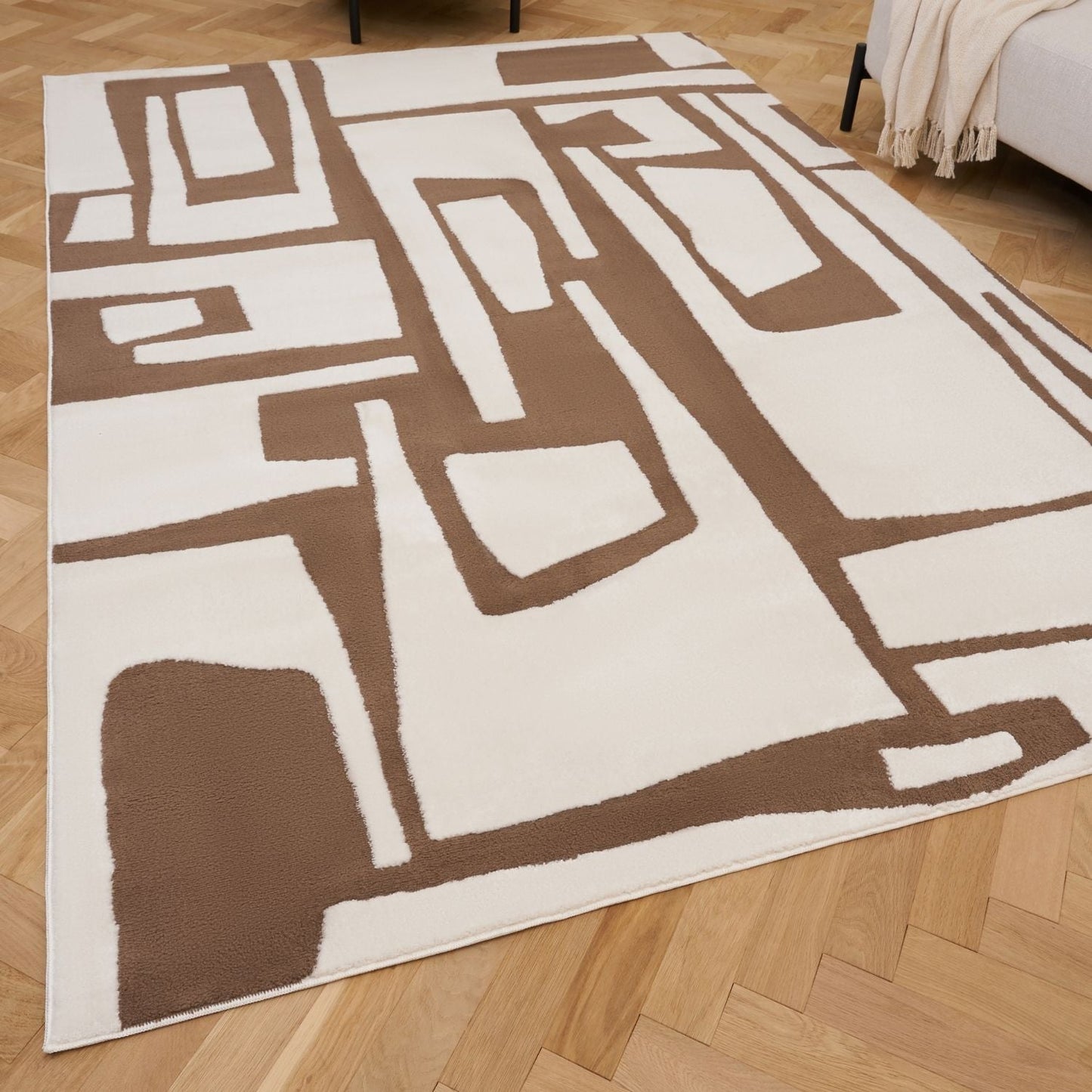 Bring bold style to your home with the Loft Abstract Brown Rug. Its abstract geometric design features striking brown shapes on a soft cream background, adding warmth, character, and visual movement to any space. Perfect for contemporary, creative, or mid-century interiors.