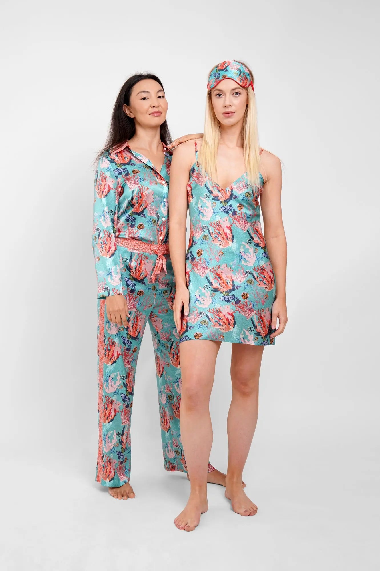 A classic PJ shape reimagined with JRF flair. Our Underwater Coral PJ top is cut from smooth silk and scattered with ocean-inspired motifs. It’s sleepwear, but make it statement.
