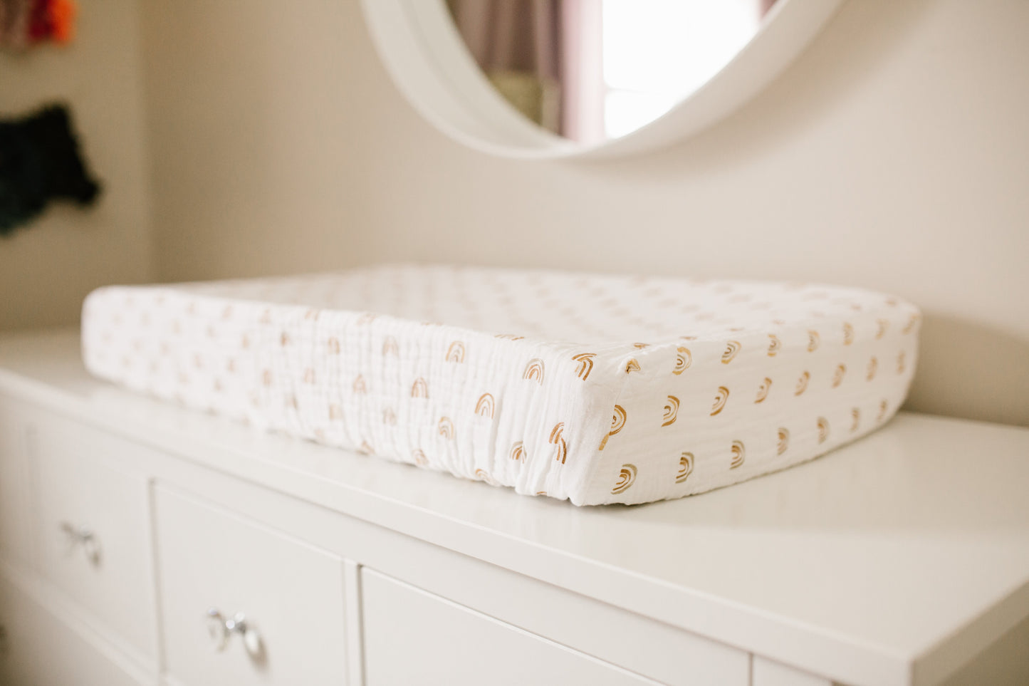 Elevate nursery style with this beautiful change pad cover from Lulujo’s Boho collection. Designed to fit a standard-size change pad, it’s made from 100% premium cotton muslin that’s soft, breathable, and gentle on baby’s skin. The single-layer muslin fabric gets softer with every wash, offering both style and comfort for everyday diaper changes. Pairs perfectly with the matching crib sheet (sold separately) for a coordinated nursery look.
