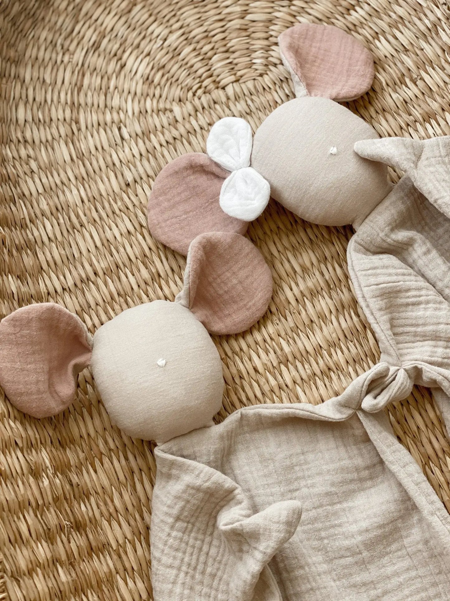 Luna and Fiff, the mice, are super soft and cuddly! Their round and big ears will allow your baby to carry them around easily! They can't wait to be part of your family.