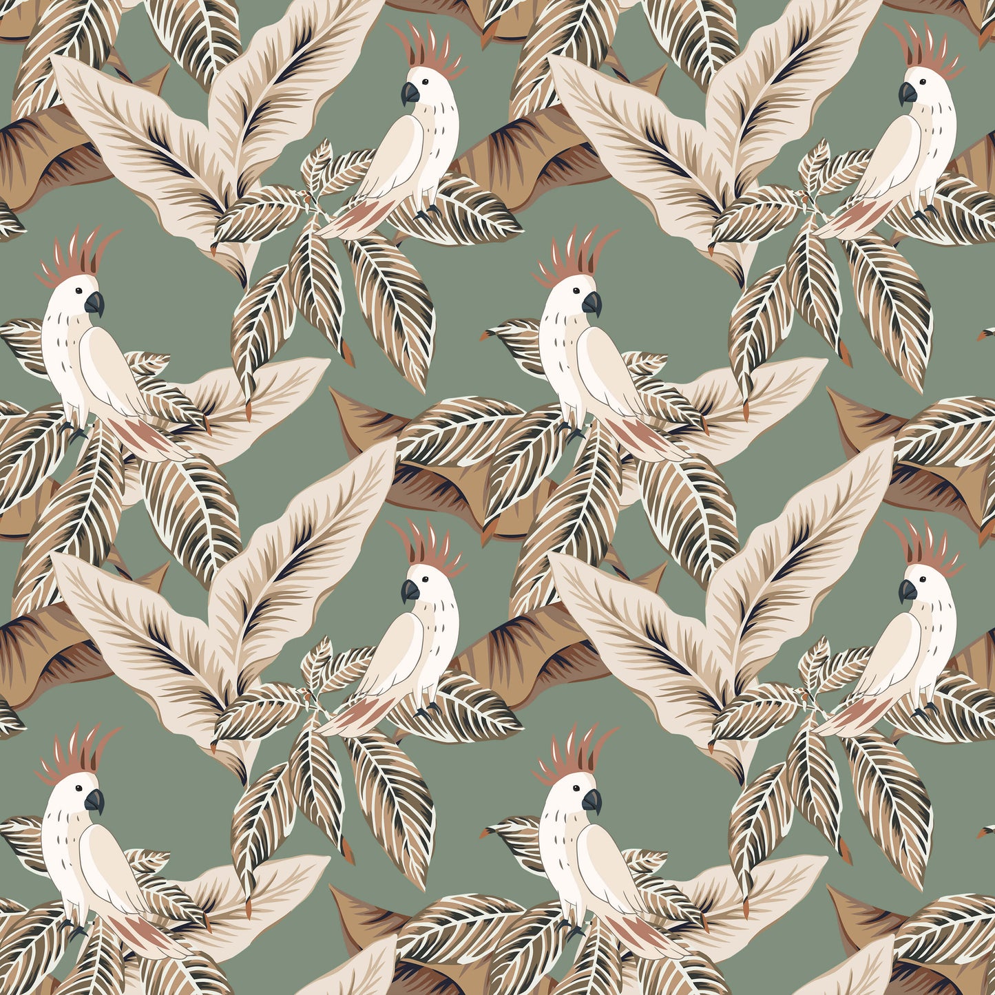 Using understated tones, this cockatoo wallpaper allows you to subtly bring the tropical theme into your space. Featuring a charming cockatoo amongst a variety of leaves, the design provides a vintage charm to the tropical theme.