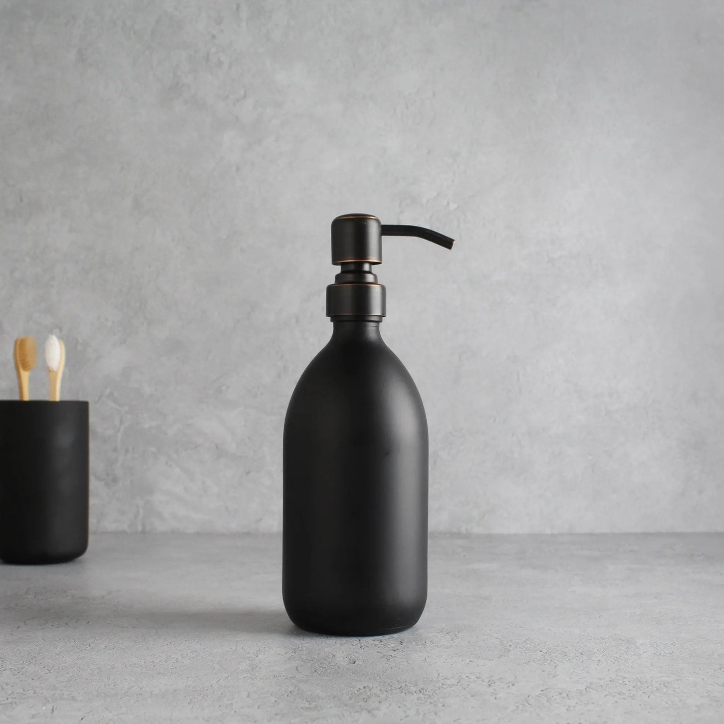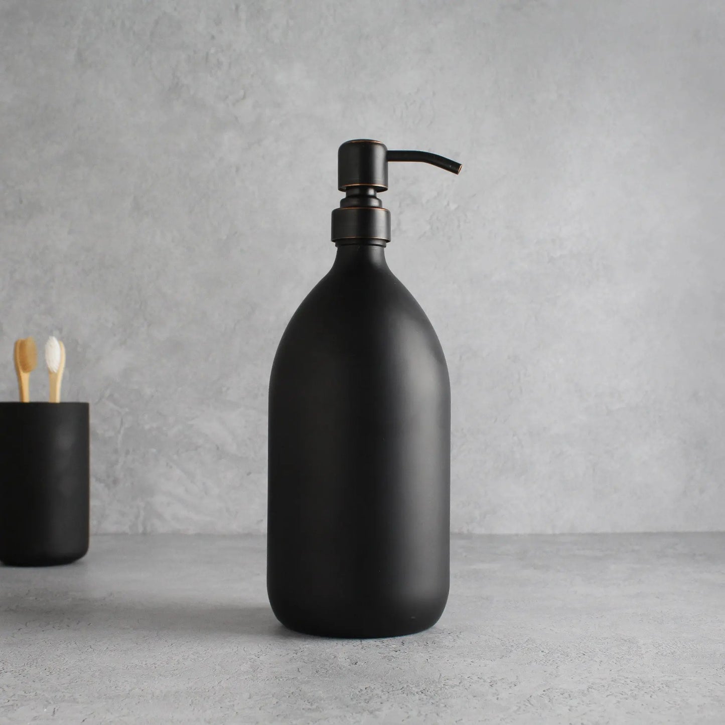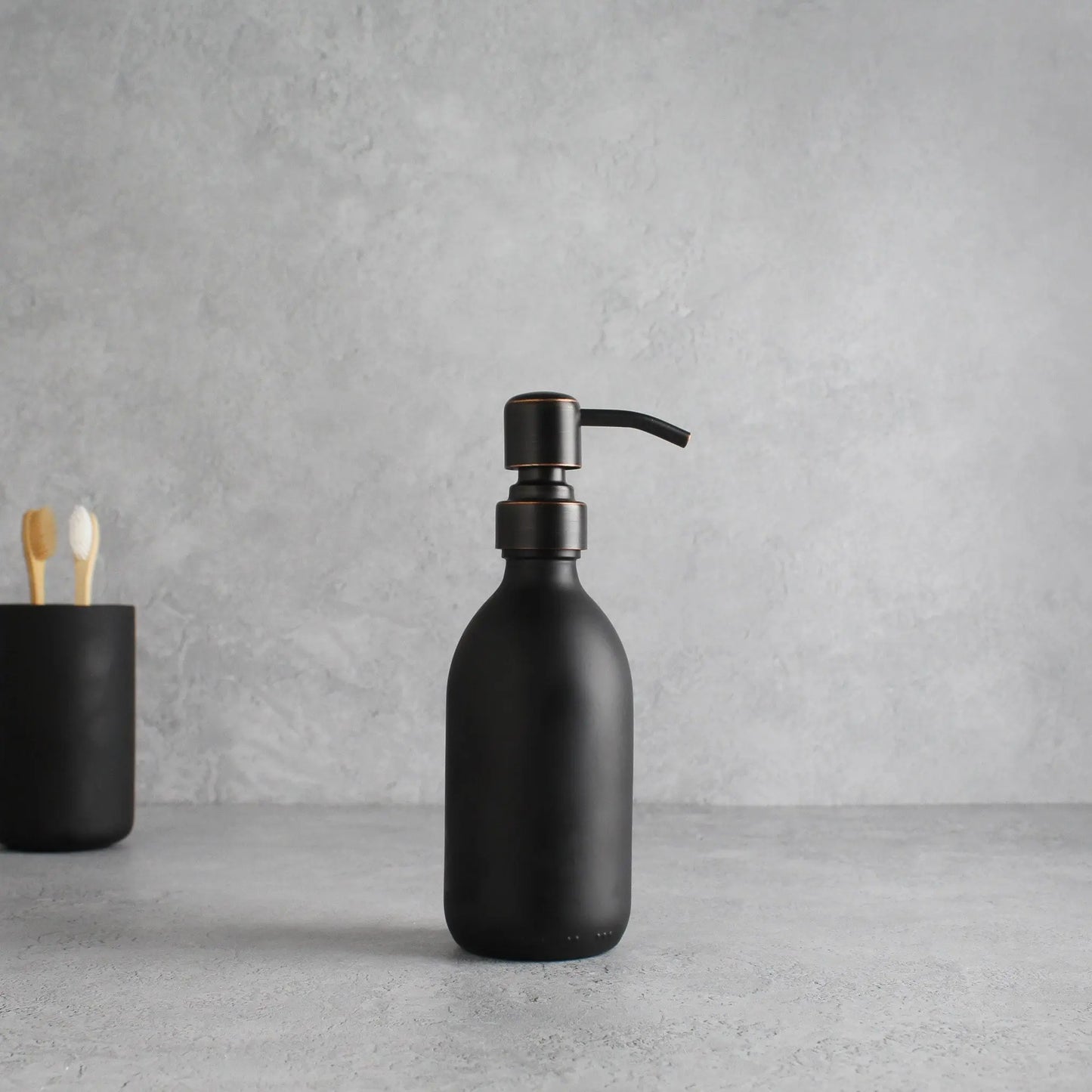 Matte Black Glass Dispenser Bottle With Black/Copper Pump