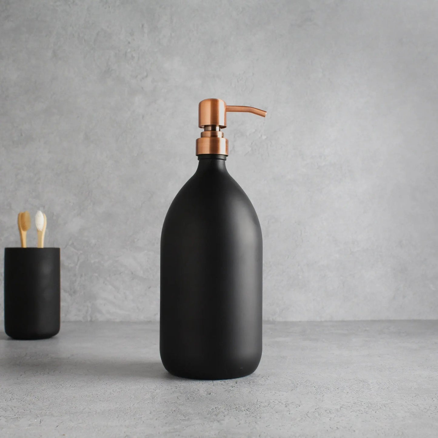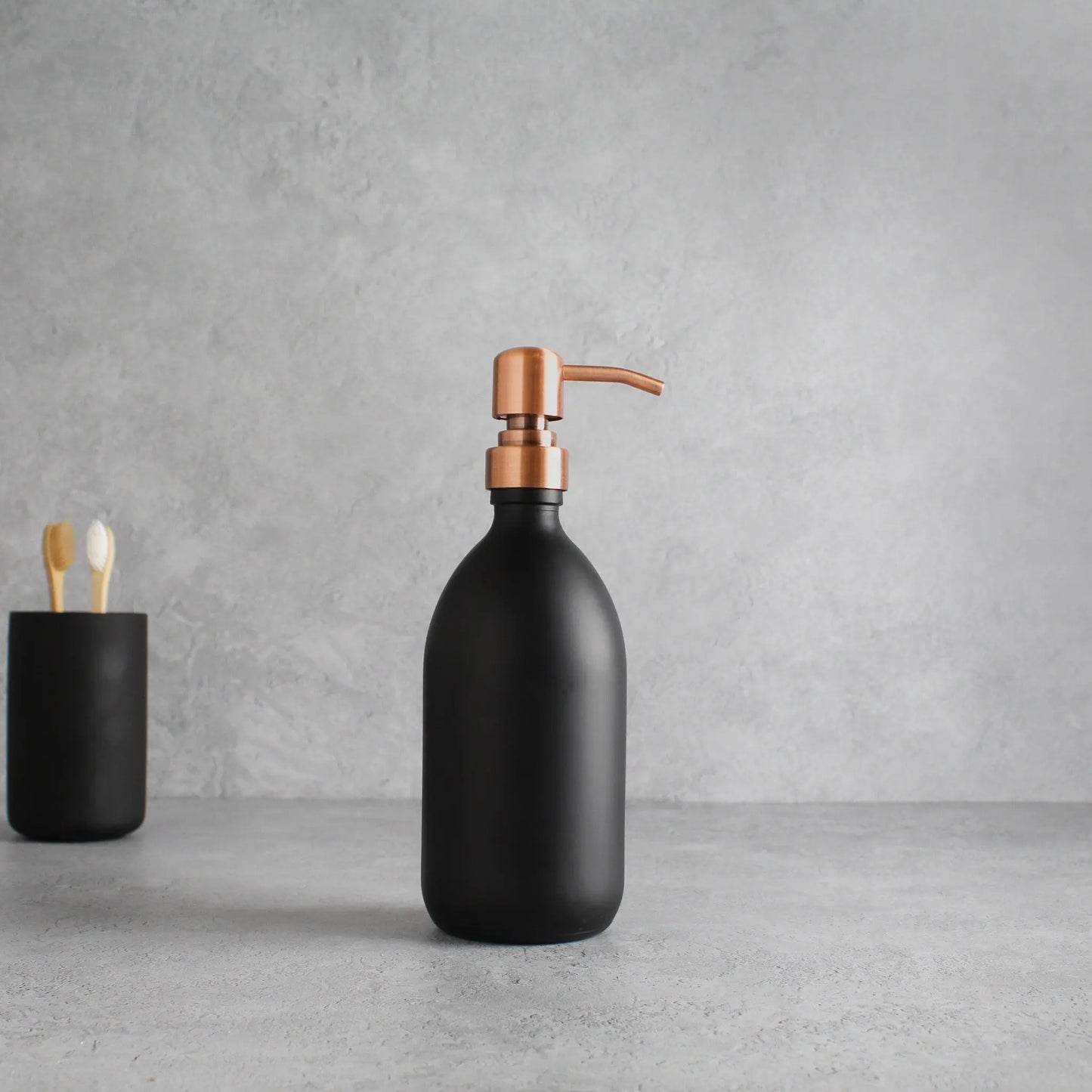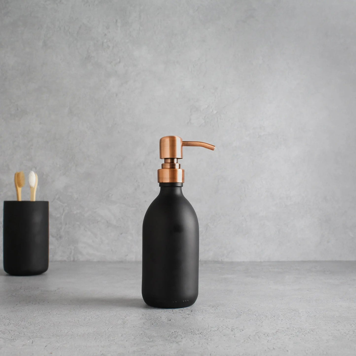 Matte Black Glass Dispenser Bottle With Rose Gold Pump