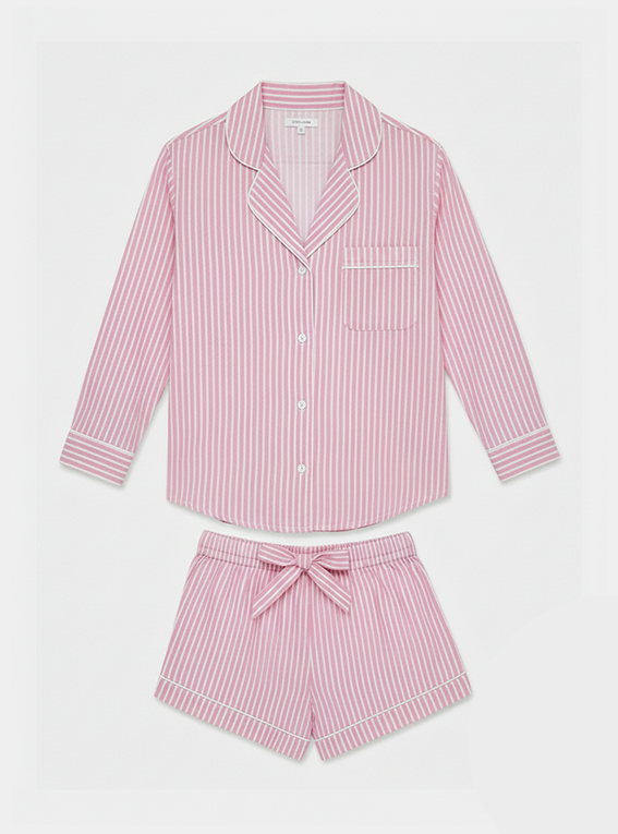Mauve Stripe Women's Long Sleeve Organic Cotton Pyjama Short Set