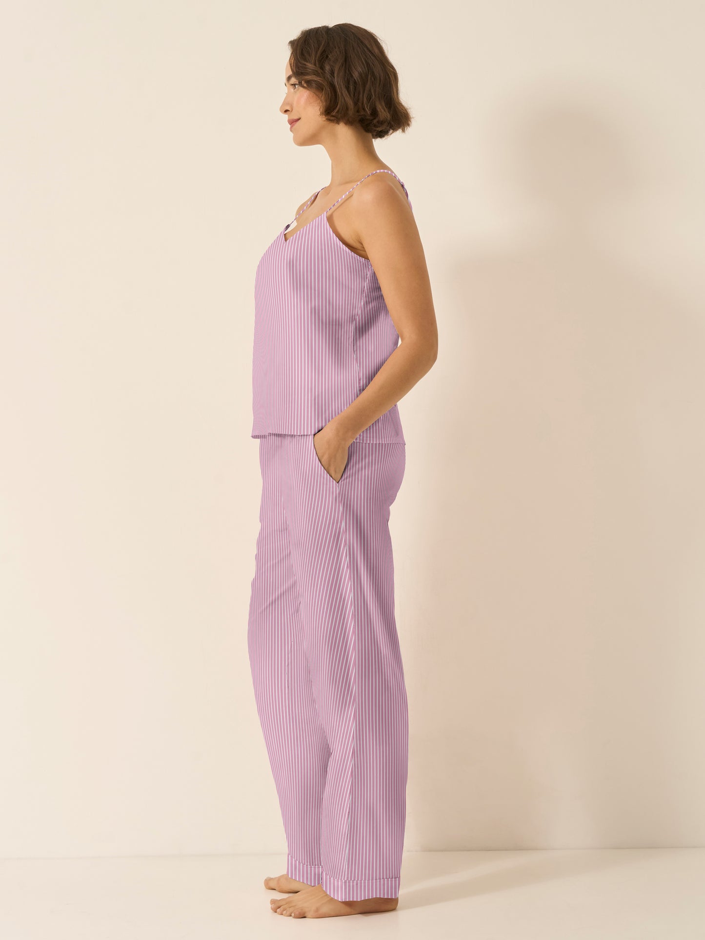 Mauve Stripe Organic Cotton Cami Trouser Set – Effortless Elegance with a Playful Twist