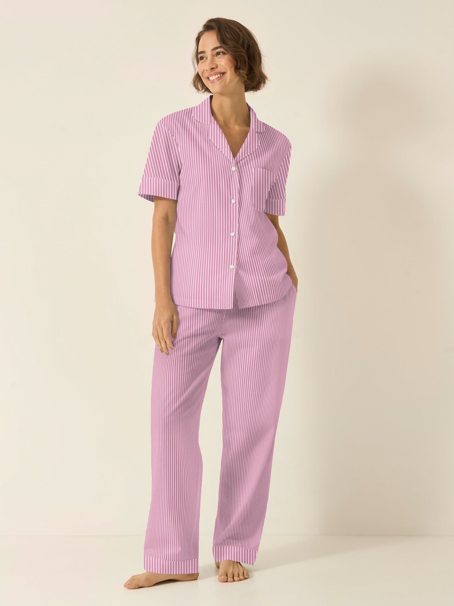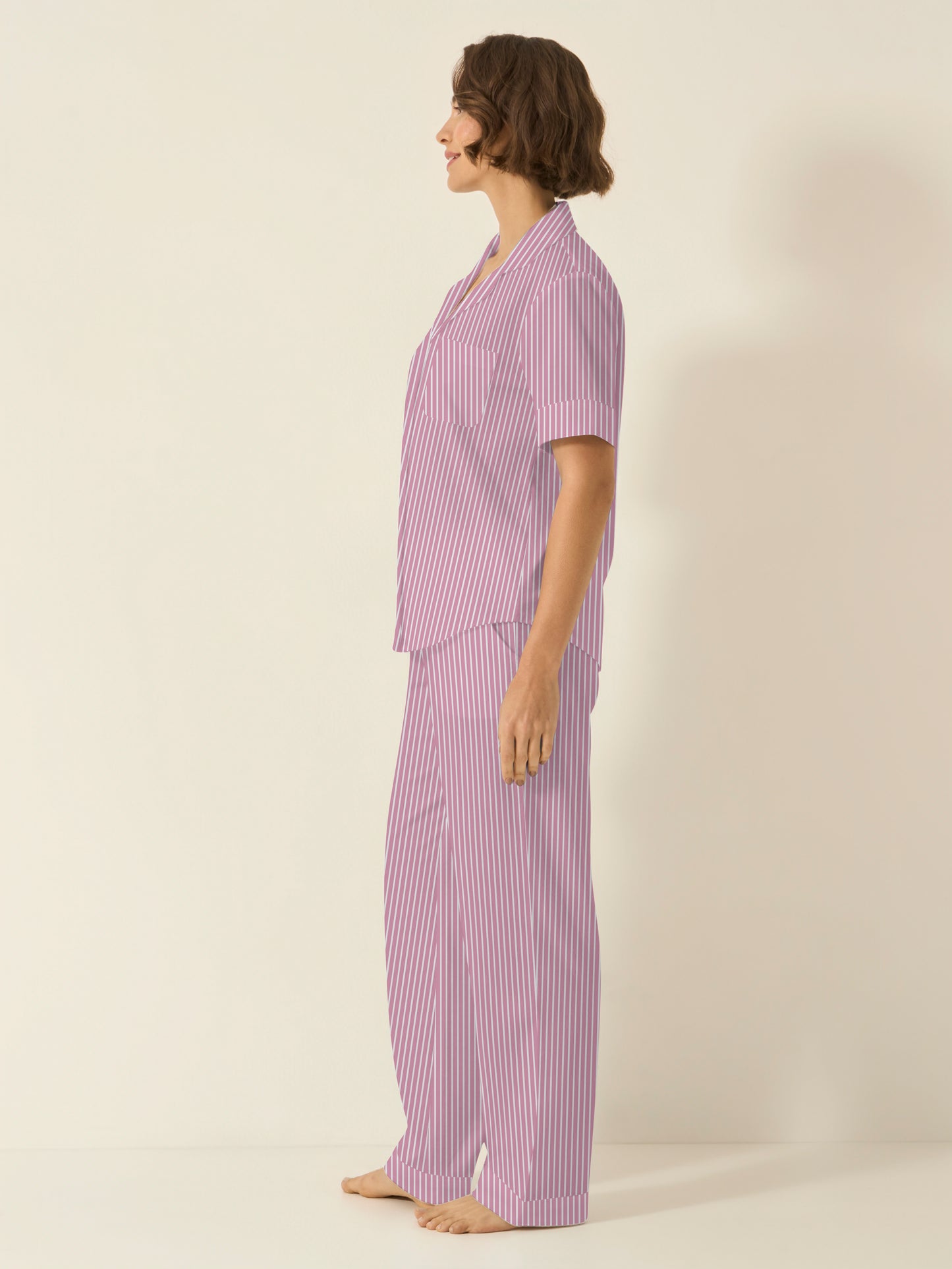 Mauve Stripe Women's Short Sleeve Organic Cotton Pyjama Trouser Set