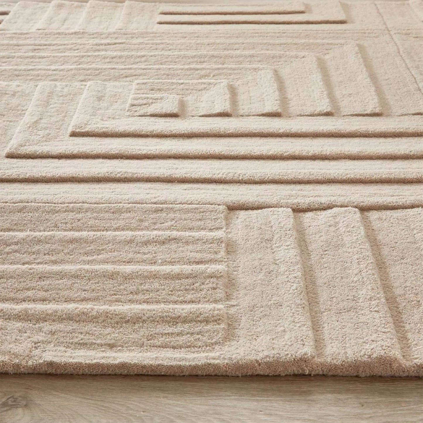 Elevate your interior decor with the bold and dynamic design of our Maze rug. Handcrafted by expert rug makers using the finest 100% pure wool, this rug boasts a strong angular pattern that adds a touch of modern sophistication to any space.