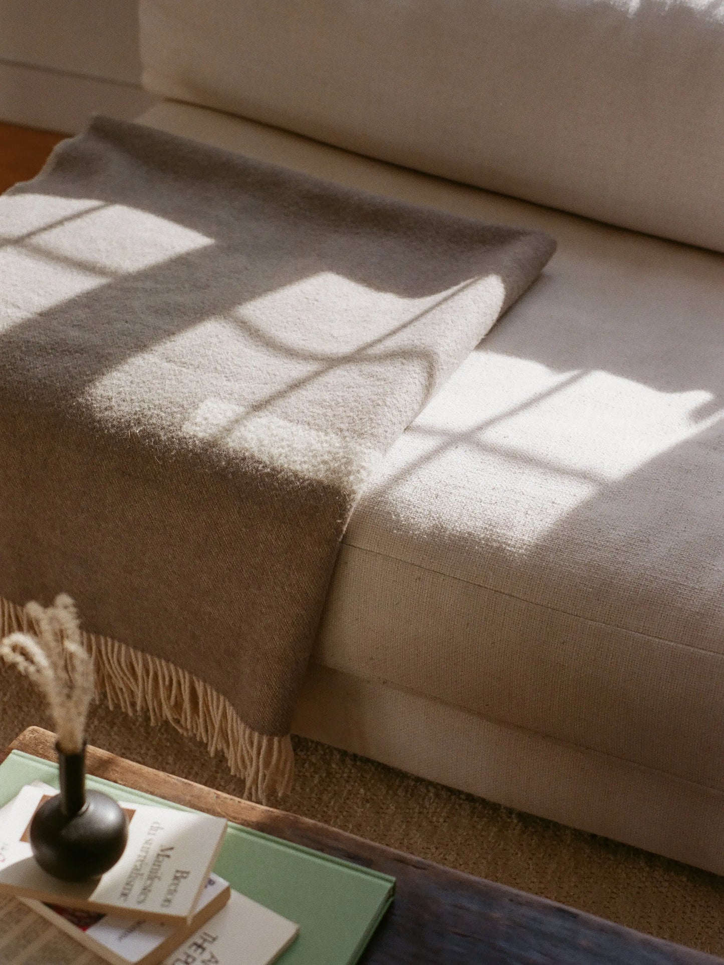 The MEADOW Grey blanket features a timeless, reversible design woven in five elegant tones of grey. Its soft gradient of hues brings a calm, sophisticated presence to any interior, complementing both modern and classic spaces. The subtle interplay of colour and texture makes MEADOW Grey a versatile essential that enhances your home with quiet beauty.