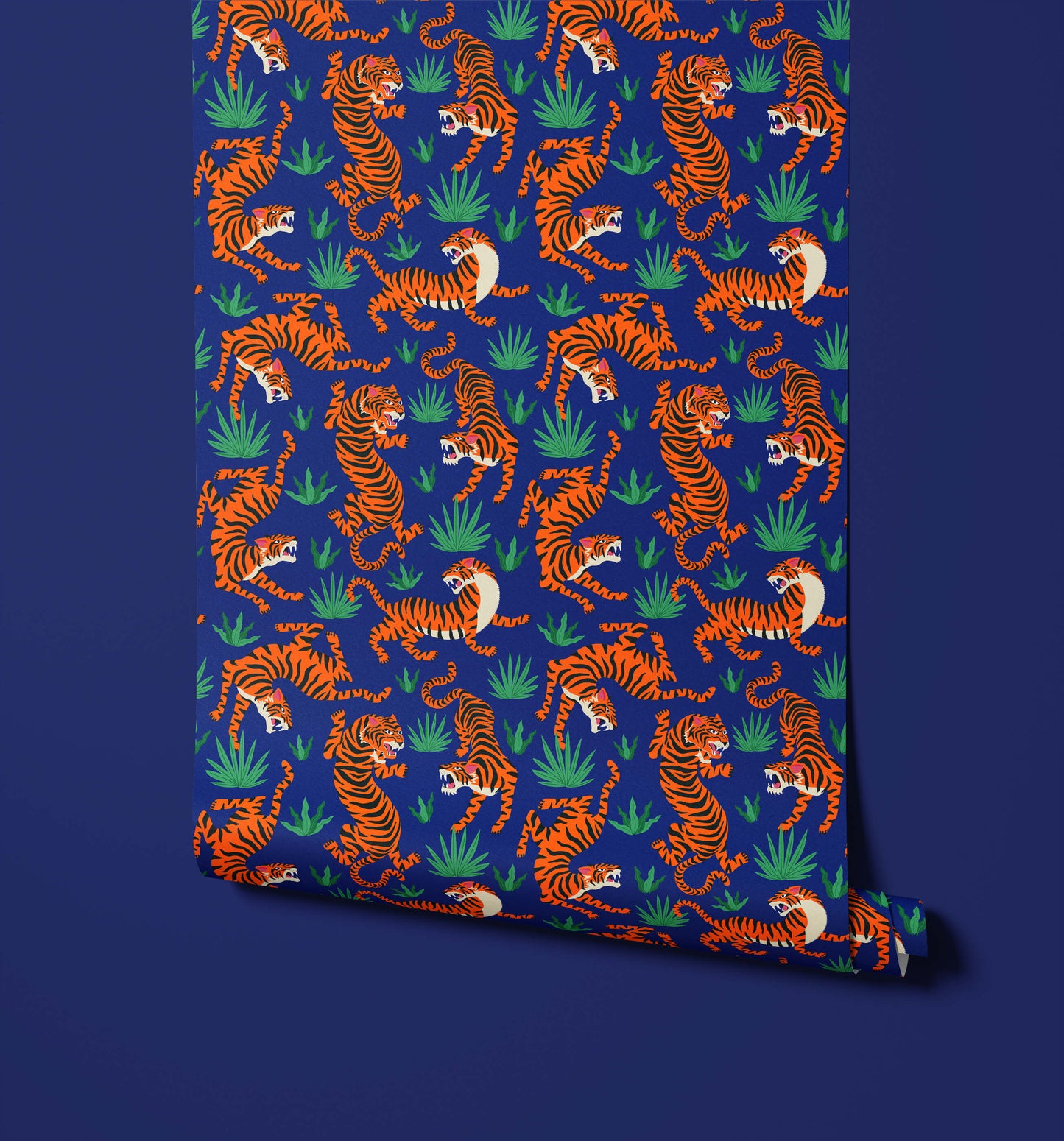 Our Oriental tiger wallpaper is bold and unapologetic. It's designed for those who love maximalism and want to incorporate a sense of jungle tropics into their space. It's available in a variety of impactful hues and will be sure to add a striking talking point to your space.