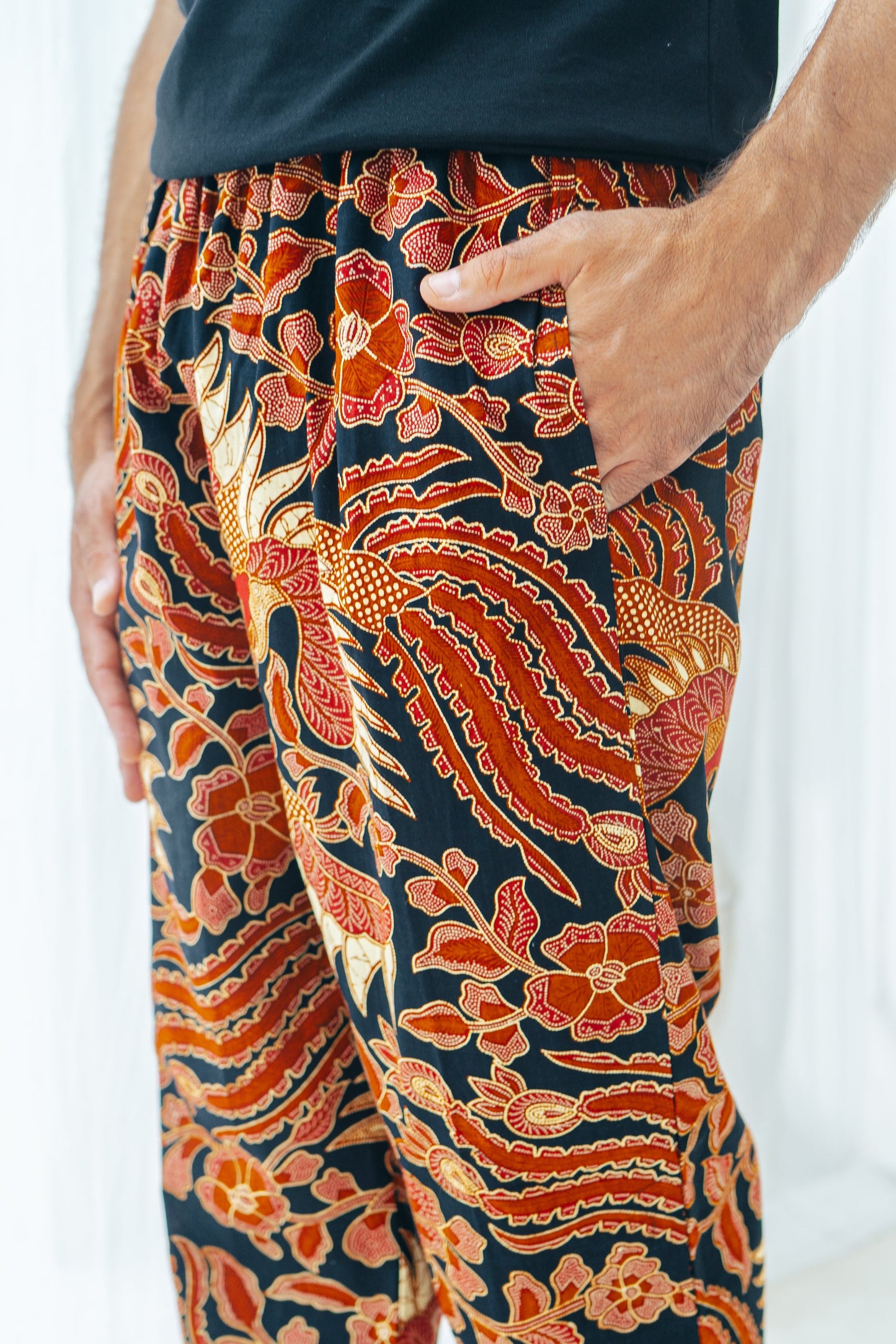 Relaxed, breathable, and effortlessly cool — these handmade cotton trousers feature a traditional Indonesian batik print in a relaxed, easygoing fit. Designed for lounging, travelling, or everyday wear, they combine heritage craft with modern comfort.