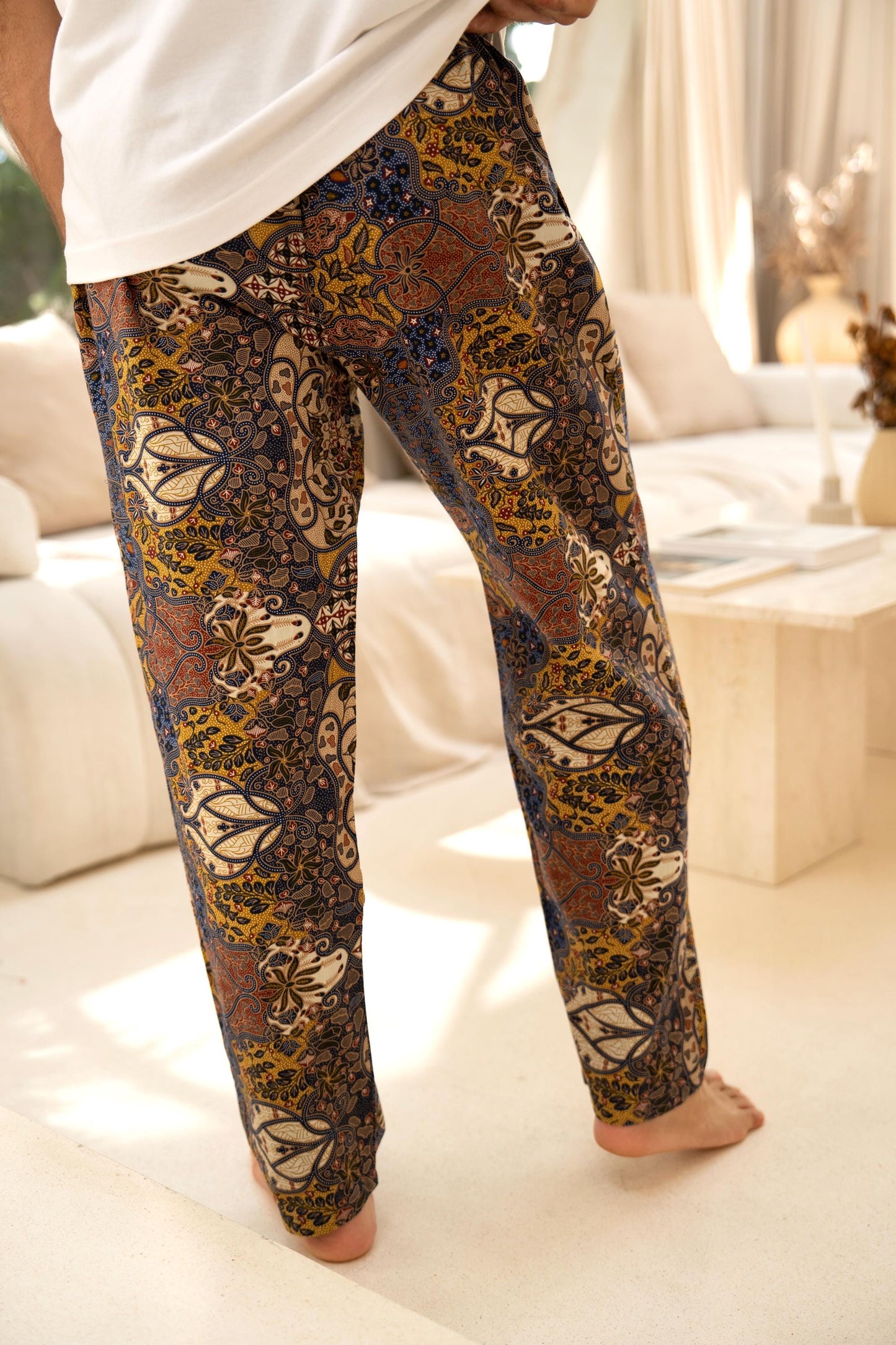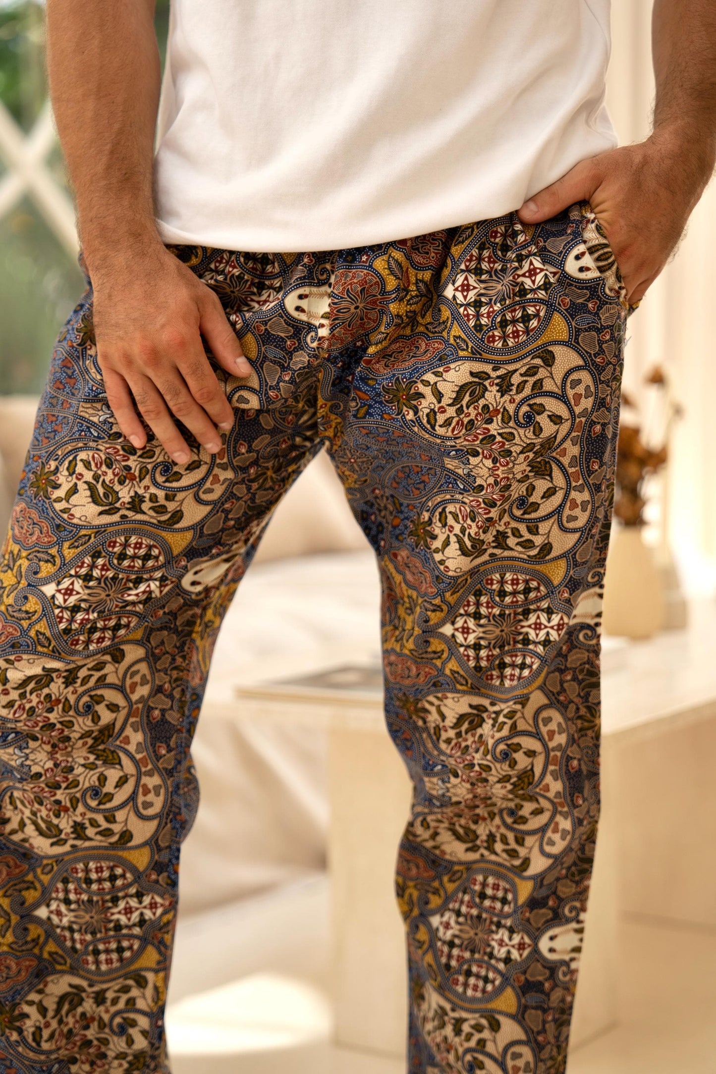 Relaxed, breathable, and effortlessly cool — these handmade trousers are crafted from 100% cotton in a traditional Indonesian batik print that’s truly one of a kind. Designed for laid-back comfort and everyday wear, they’re the perfect blend of style and ease.