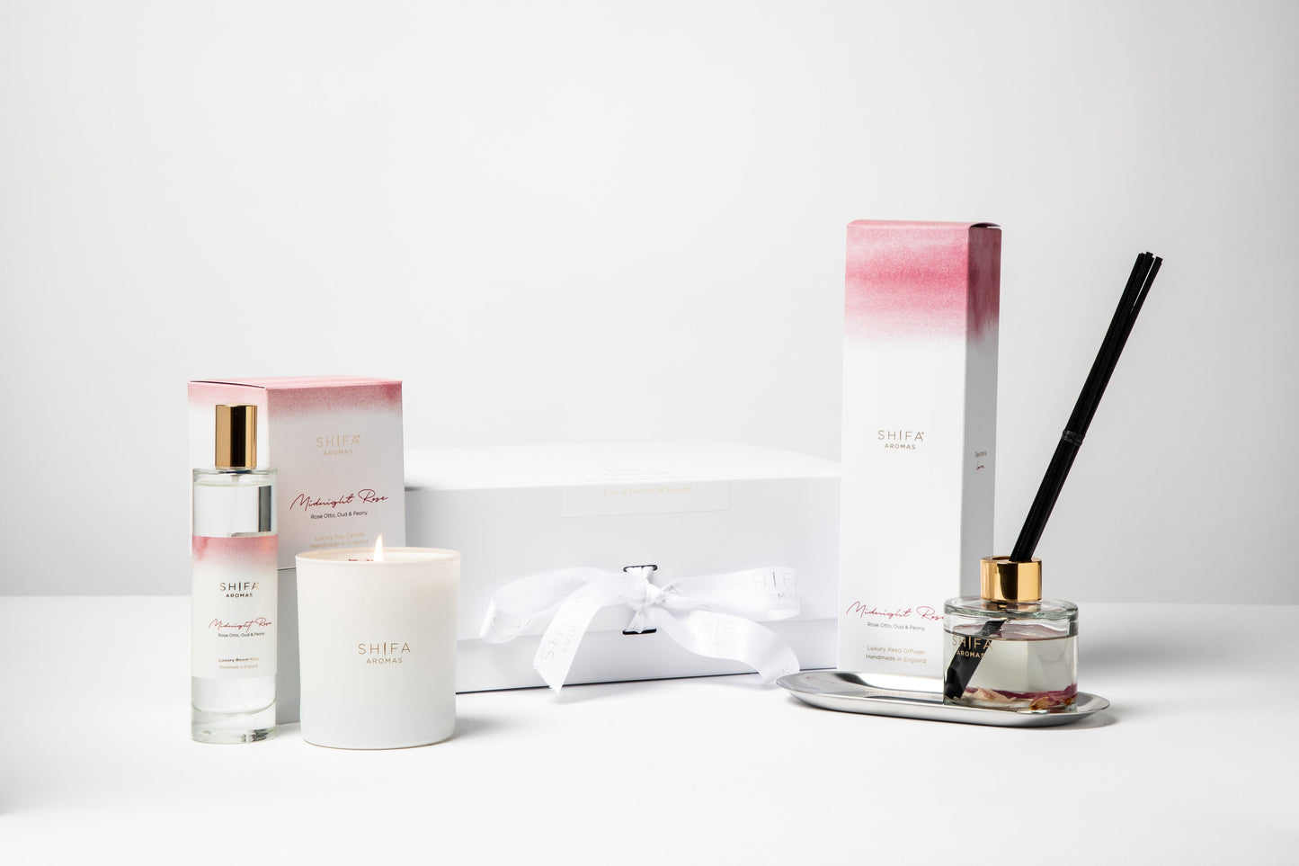 Study shows scents such as rose elevates love and calms stress. Our Midnight rose collection are expertly handmade with the highest quality of scents such as Mandarin, Rose, jasmine then leading to a spicy floral heart of coriander seed.