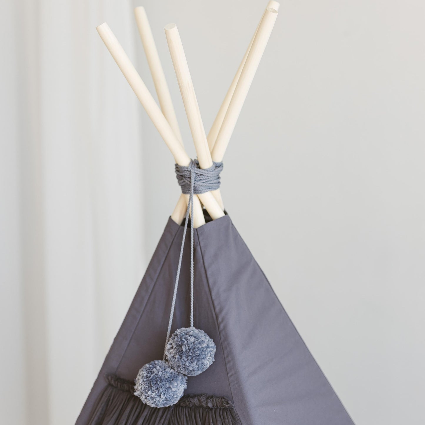 • Design: Grey fairy-inspired teepee with soft tulle and pom-pom embellishments
