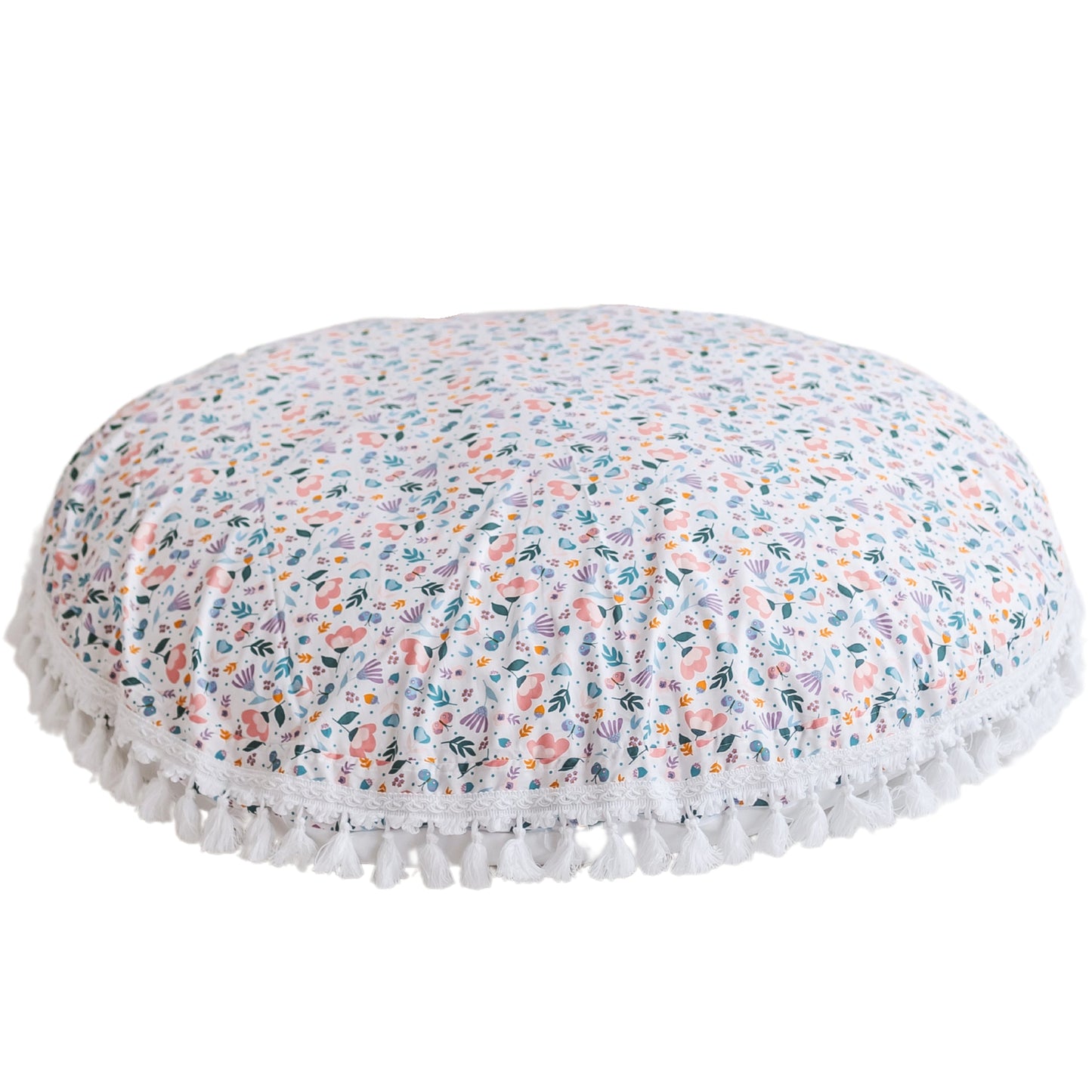 The MINICAMP Large Floor Cushion in White and Floral Pattern is a charming and cozy addition to any child’s room or play area. Its generous size offers a comfortable space perfect for play, reading, or relaxation, making it suitable for children of all ages.