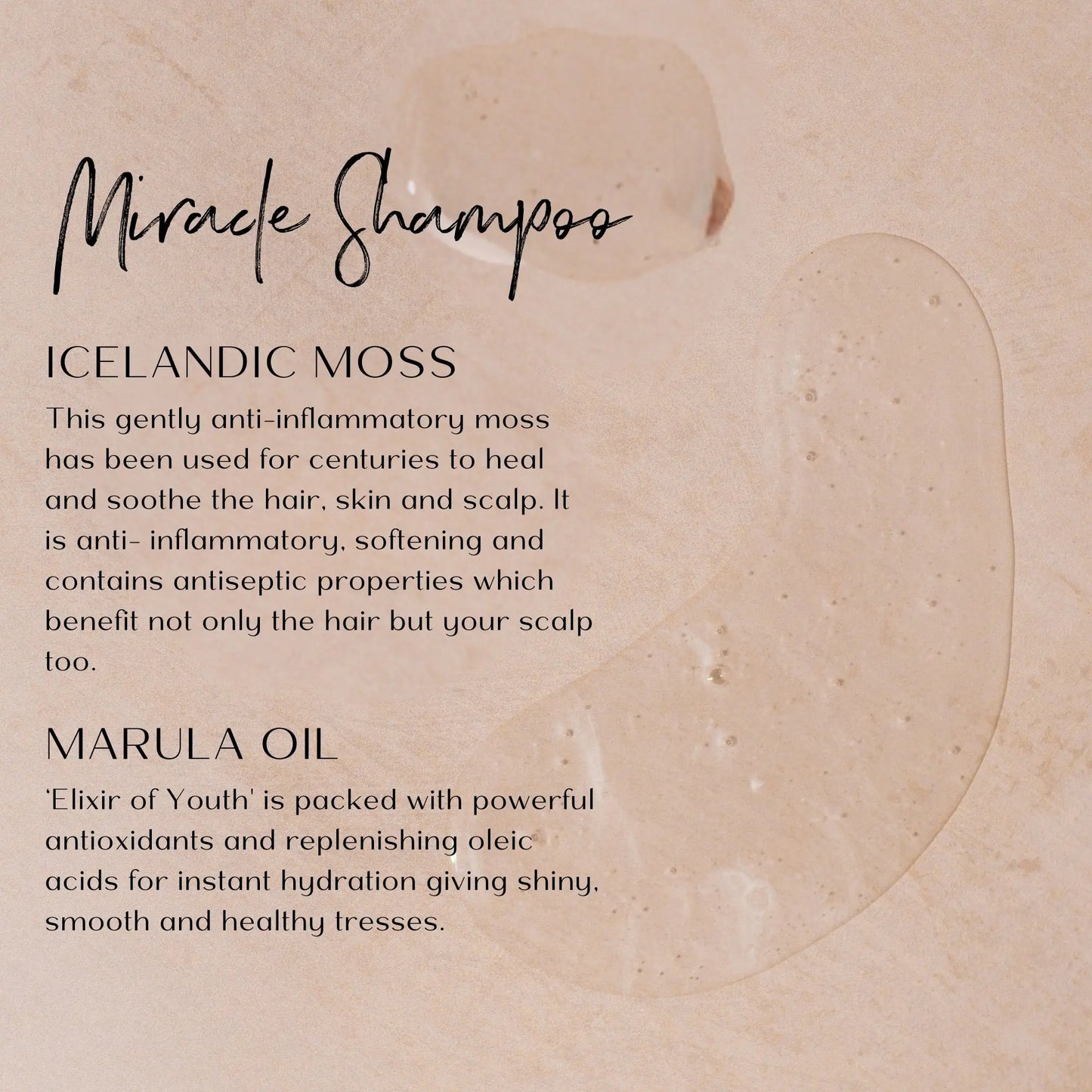 Our Miracle Shampoo is gentle and balanced and is perfect for all hair types. It leaves your hair feeling clean, shiny, soft and full of body. Kind to the scalp, it nourishes with every wash and is suitable for natural hair and colour treated hair.