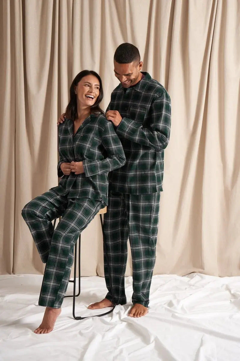 Available in three rich colours—Bordeaux, Green, and Midnight—the Mister You Plaid Pyjama Set is perfect for pairing with the Pretty You Plaid Pyjama Set for women, creating a coordinated, festive look. The soft, brushed cotton fabric allows for breathability and freedom of movement, making it the ideal choice for cosy nights and lazy mornings. Elevate your nightwear with the traditional charm and luxurious comfort of our Plaid Collection.