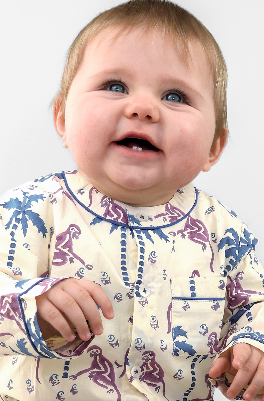 Swing through the air with Mojo the monkey in this PJ set, as he leaps through trees and snacks on coconuts. For cheeky ones who love a little monkey business in their day. Our PJs bring together wild prints and comfy styles, letting every kid show off their unique vibe.