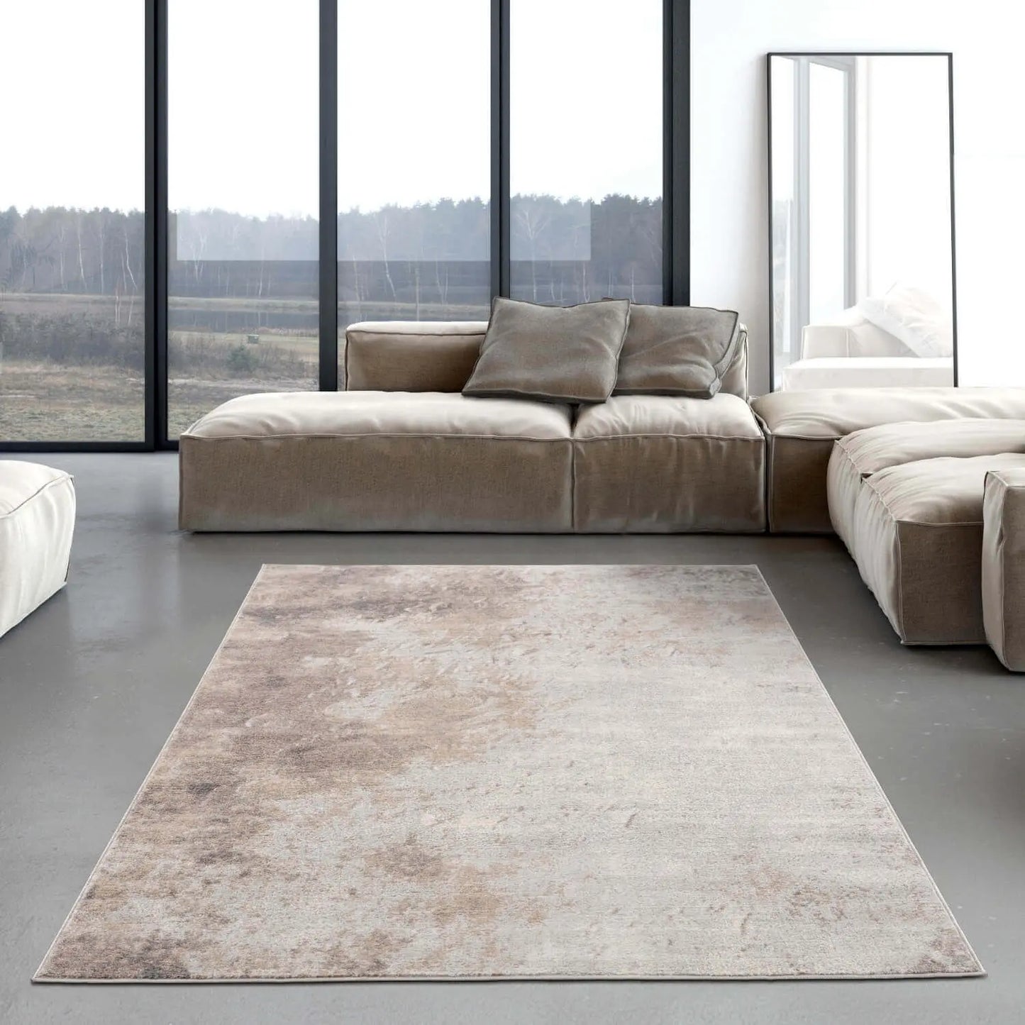 Abstract Design Living Room Rug in Brown has a deep soft and eye-catching dense pile made from 100% heat-set polypropylene that brings the advantage of being non-static, anti-allergic and easy to hoover and clean. It will bring brightness to your rooms for a long time with its stain-resistant and non-shedding pile, the edges are 4 sides overlocked to give it that perfect finish and durability.