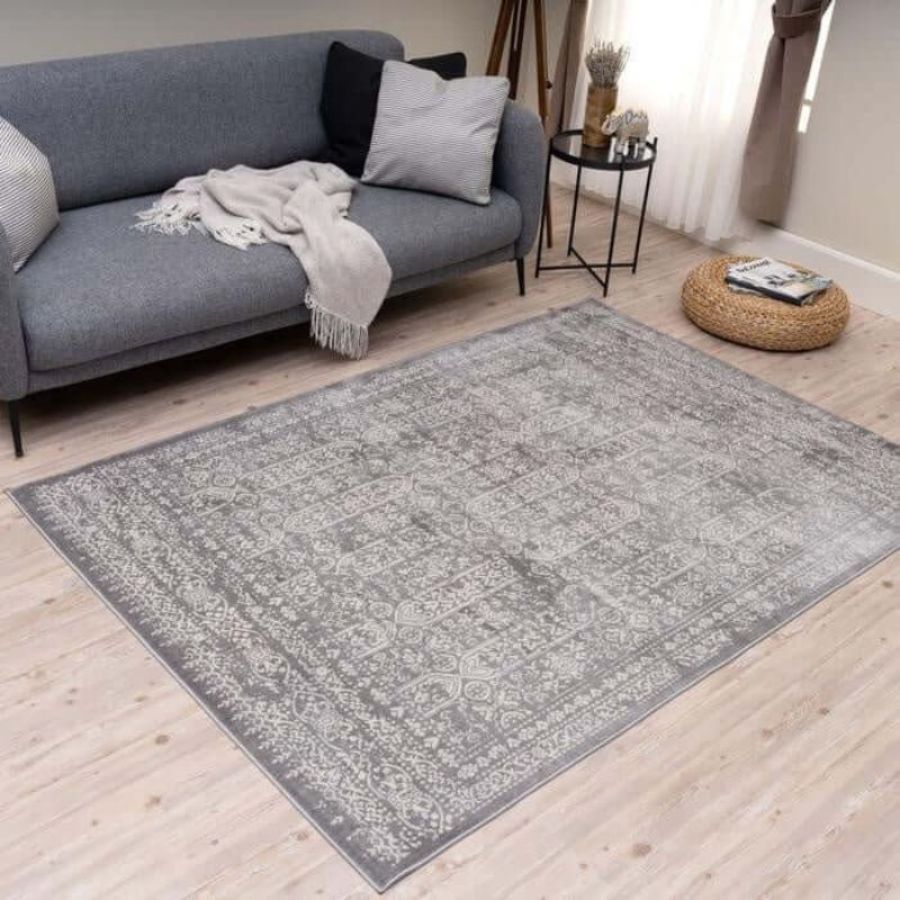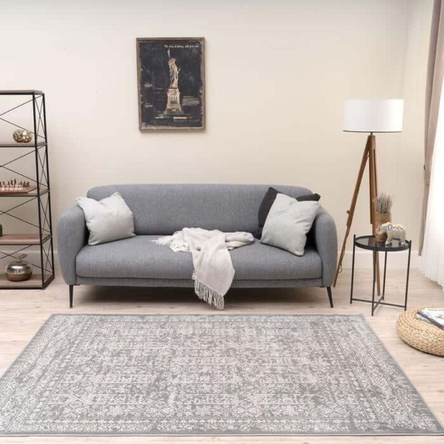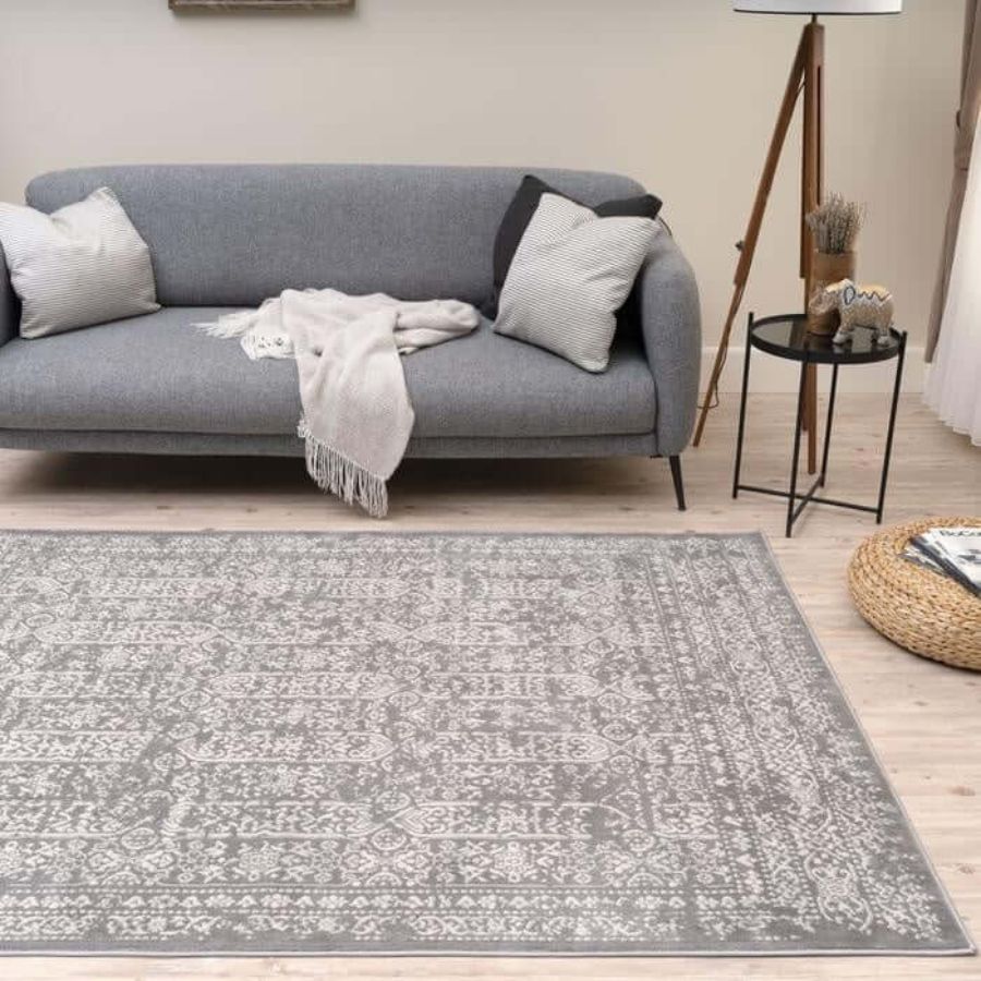 Living Room Rug Vintage Design In Grey has a deep soft and eye-catching dense pile made from 100% heat-set polypropylene that brings the advantage of being non-static, anti-allergic and easy to hoover and clean. It will bring brightness to your rooms for a long time with its stain-resistant and non-shedding pile, the edges are 4 sides overlocked to give it that perfect finish and durability.