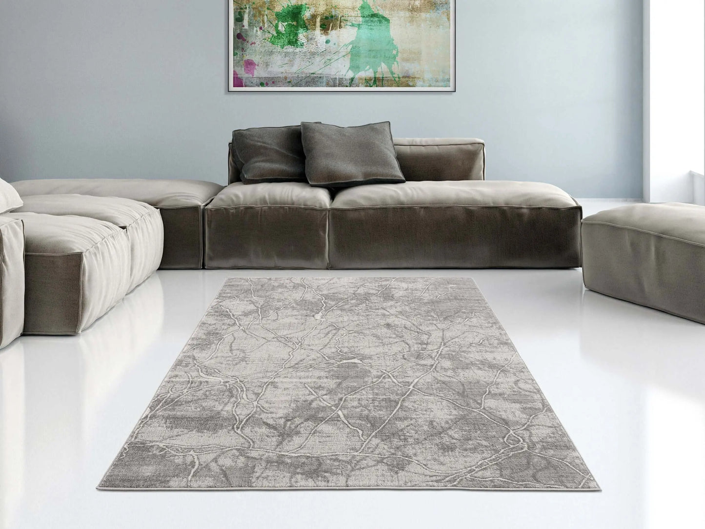 Abstract Design Living Room Rug in Dark Grey has a deep soft and eye-catching dense pile made from 100% heat-set polypropylene that brings the advantage of being non-static, anti-allergic and easy to hoover and clean. It will bring brightness to your rooms for a long time with its stain-resistant and non-shedding pile. The edges are 4 sides overlocked to give it that perfect finish and durability.
