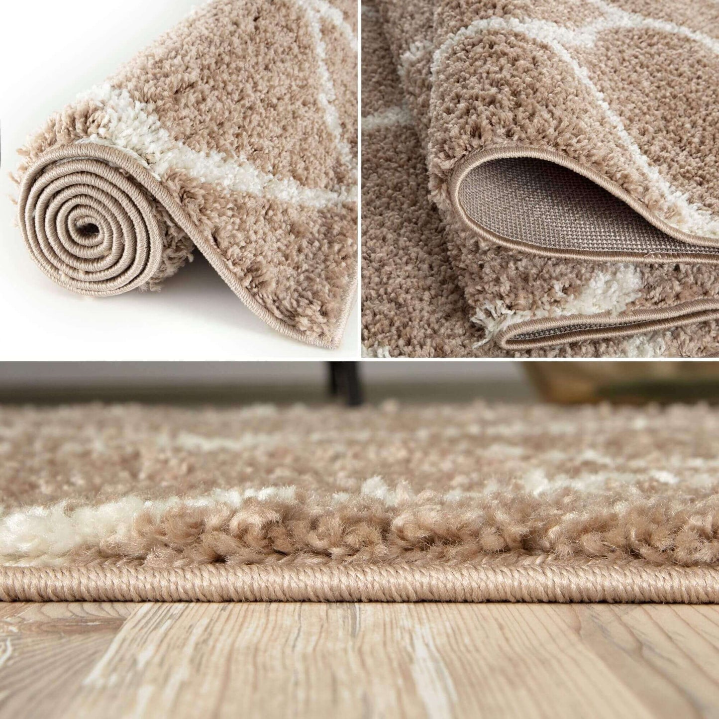 Trellis Design Thick Shaggy Area Rugs Beige has a pile height of 30mm and is thicker than other shaggy rugs. The design of the shaggy rug conveys an exquisite look and rich feel and a pleasing choice of patterns. This rug can easily suit any room, classic or modern.