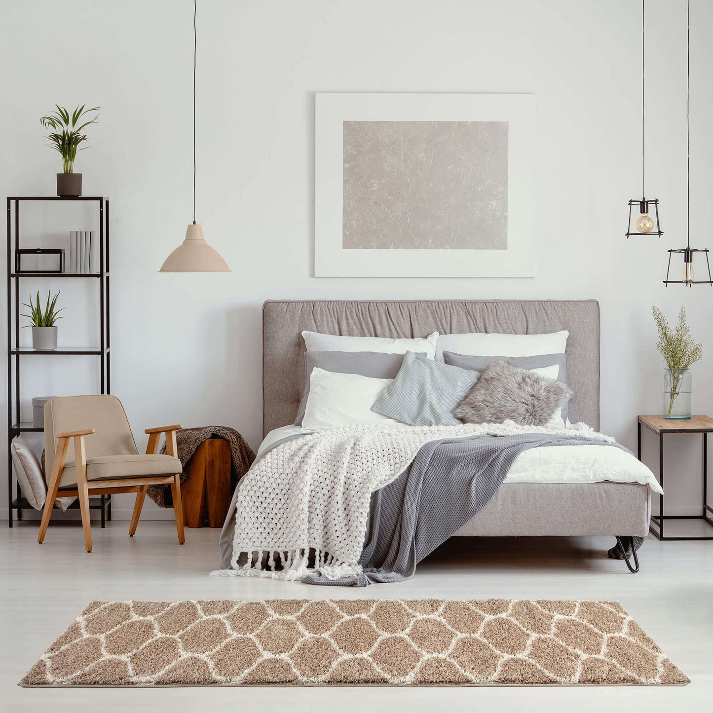Trellis Design Thick Shaggy Area Rugs Beige is a top-notch luxury and high-quality shaggy rug. It makes you feel like walking on clouds with soft piles. Soft 100% twisted fibre shaggy rugs are made from high-quality polypropylene also meaning it is totally non-shedding quality. A trendy natural look that gives a marvellous effect and dense pile.