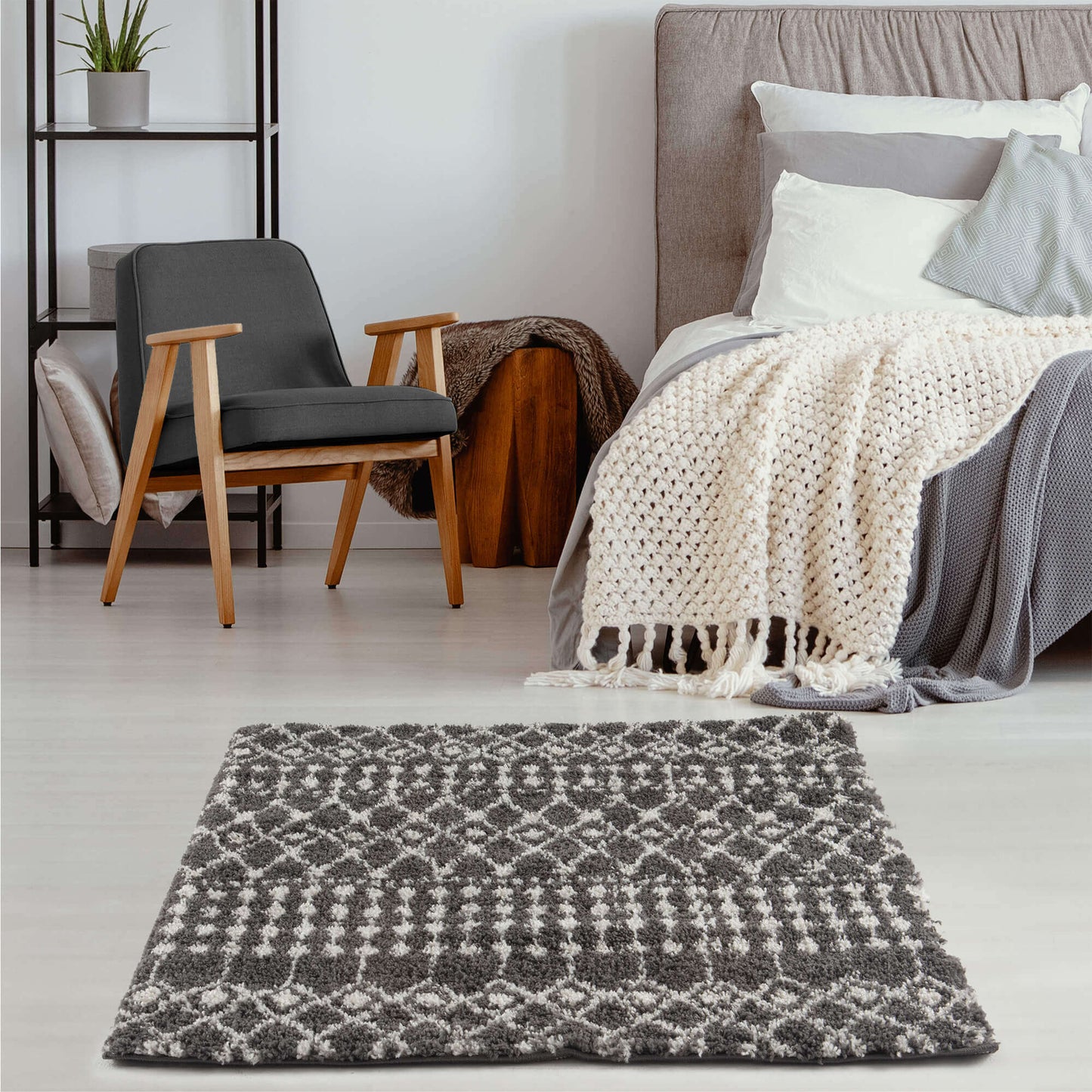 Moroccan Dark Grey Shaggy Rug | 1040