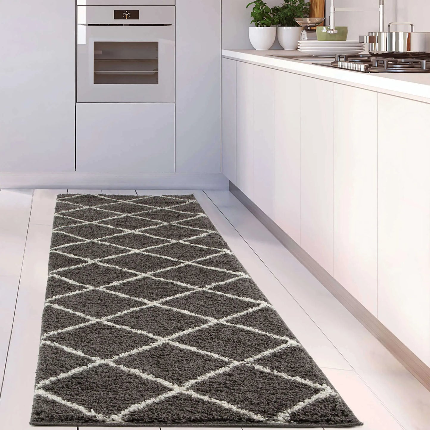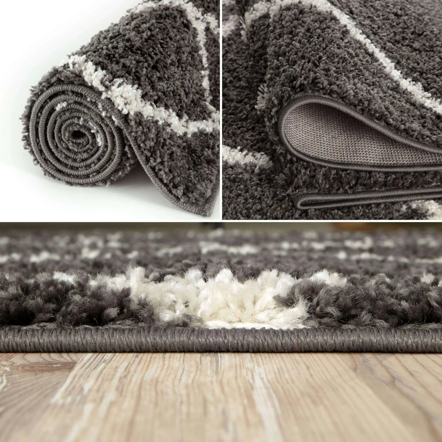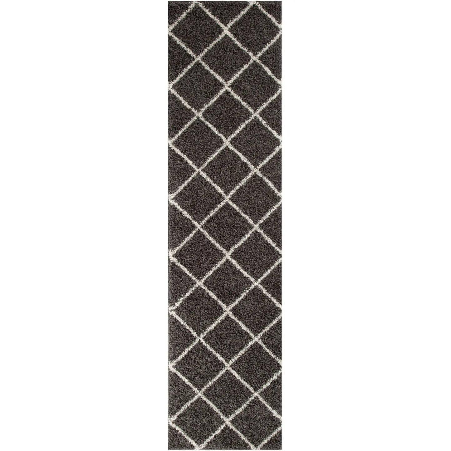 Diamond Design Thick Shaggy Area Rugs Dark Grey has a pile height of 30mm and is thicker than other shaggy rugs. The design of the shaggy rug conveys an exquisite look and rich feel and a pleasing choice of patterns. This rug can easily suit any room, classic or modern.