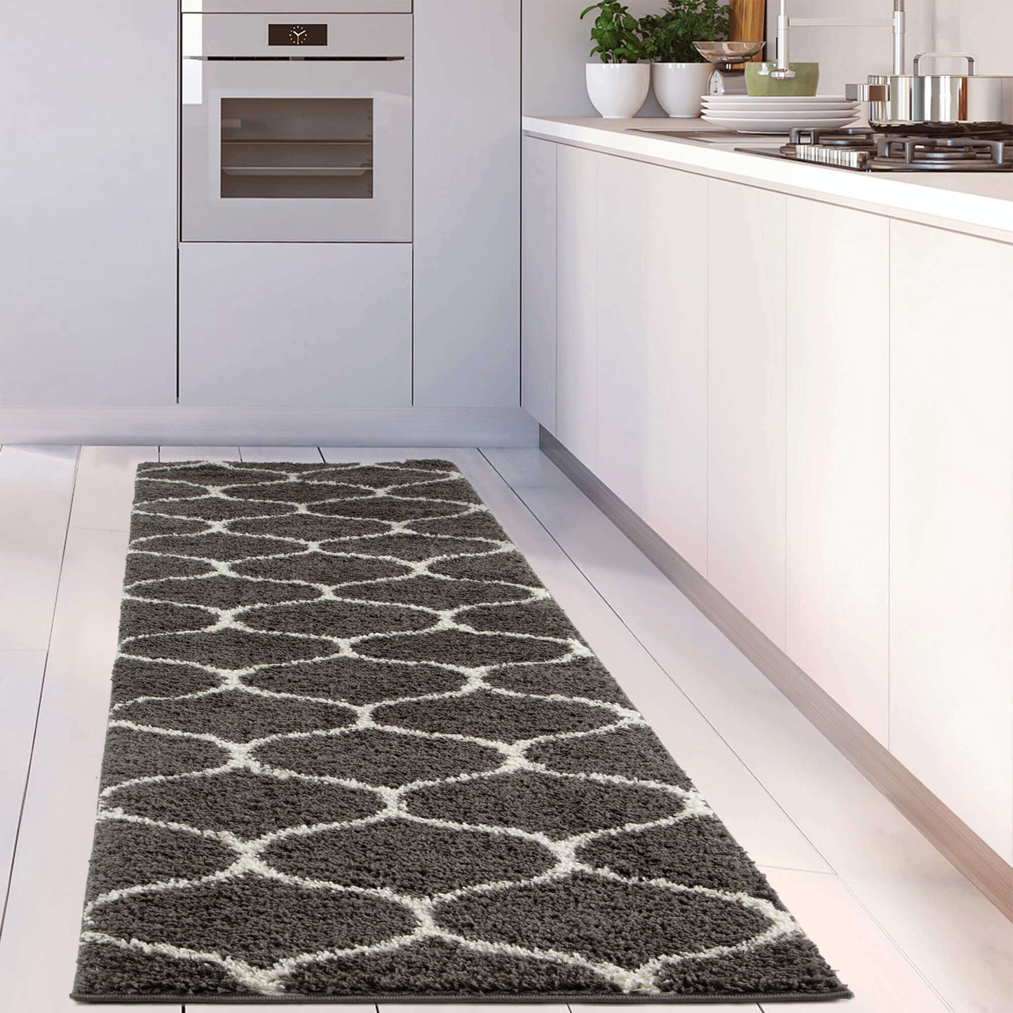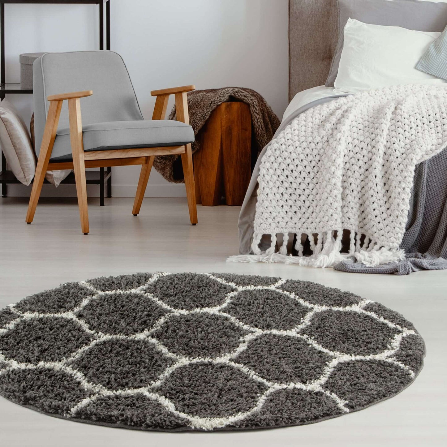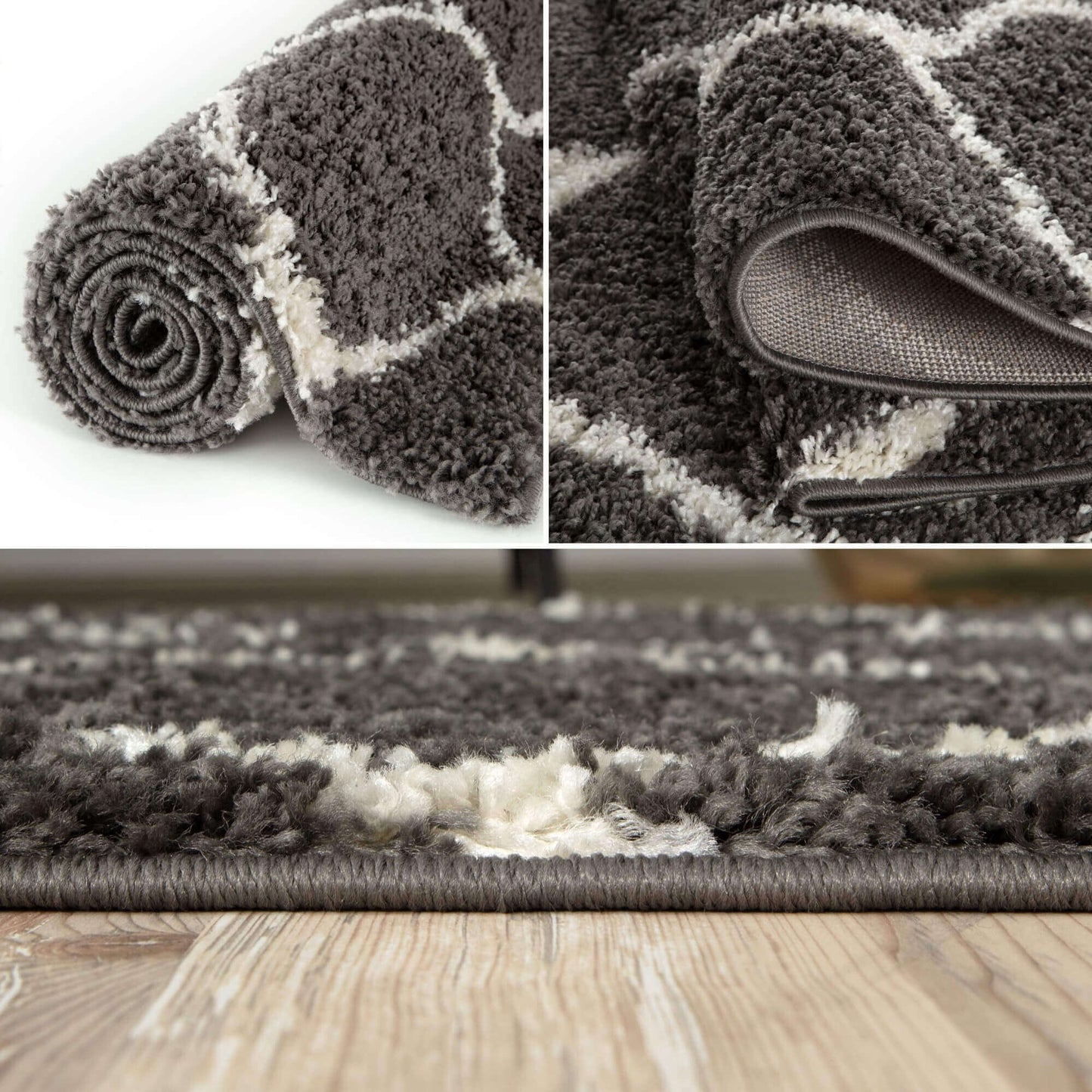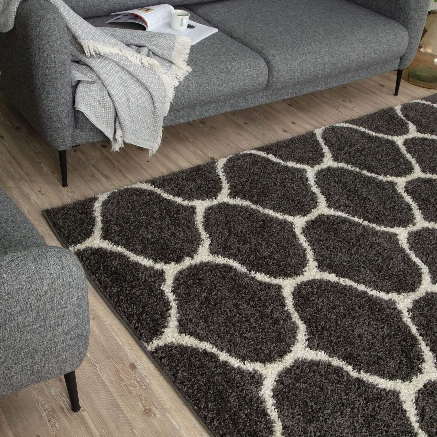 Trellis Design Thick Shaggy Area Rugs Dark Grey has a pile height of 30mm and is thicker than other shaggy rugs. The design of the shaggy rug conveys an exquisite look and rich feel and a pleasing choice of patterns. This rug can easily suit any room, classic or modern.