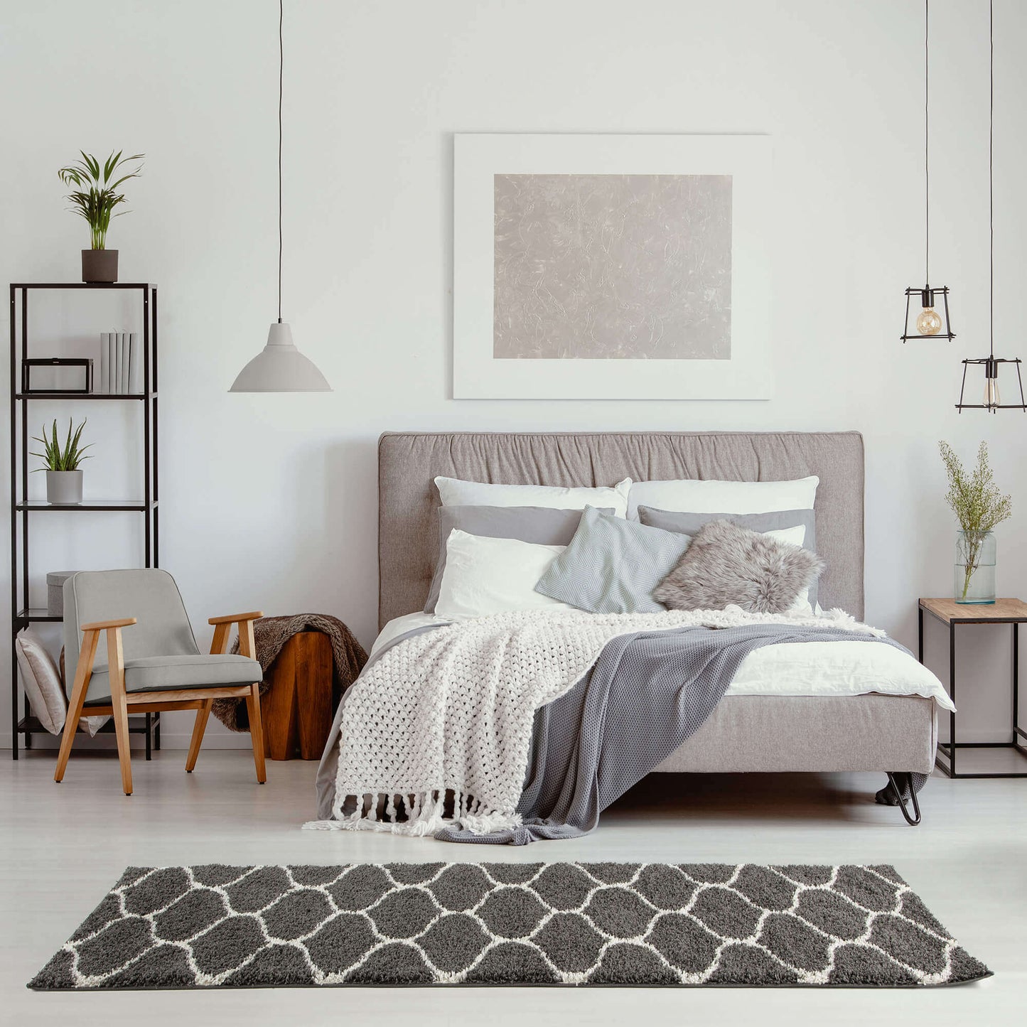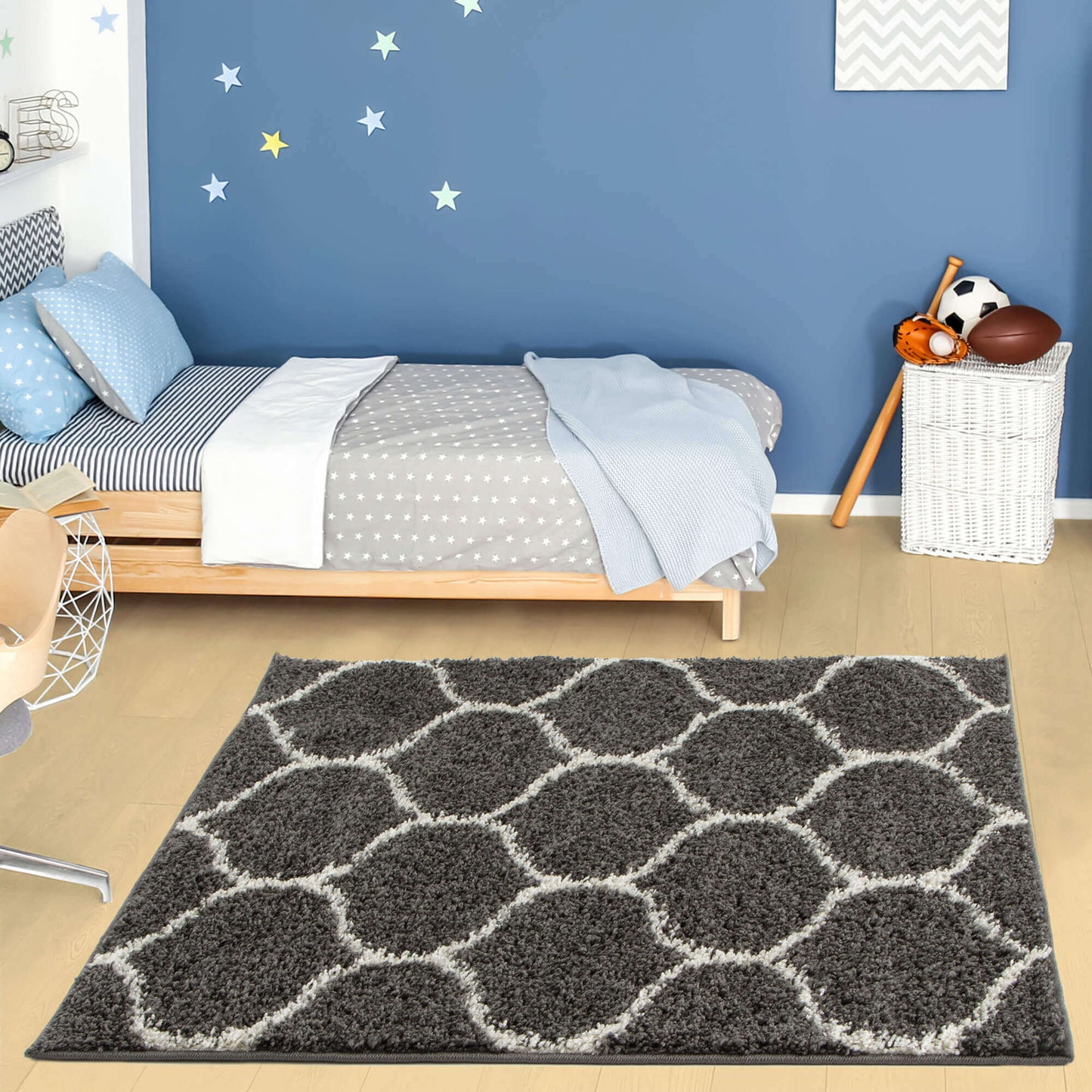 Trellis Design Thick Shaggy Area Rugs Dark Grey is a top-notch luxury and high-quality shaggy rug. It makes you feel like walking on clouds with soft piles. Soft 100% twisted fibre shaggy rugs are made from high-quality polypropylene also meaning it is totally non-shedding quality. A trendy natural look that gives a marvellous effect and dense pile.