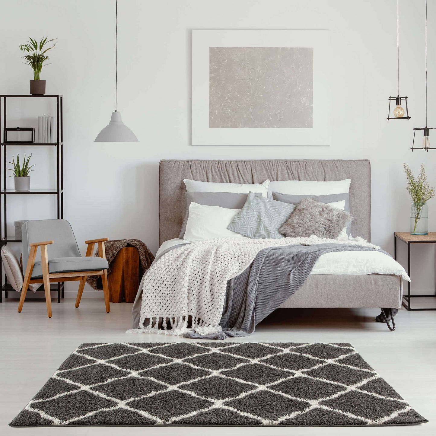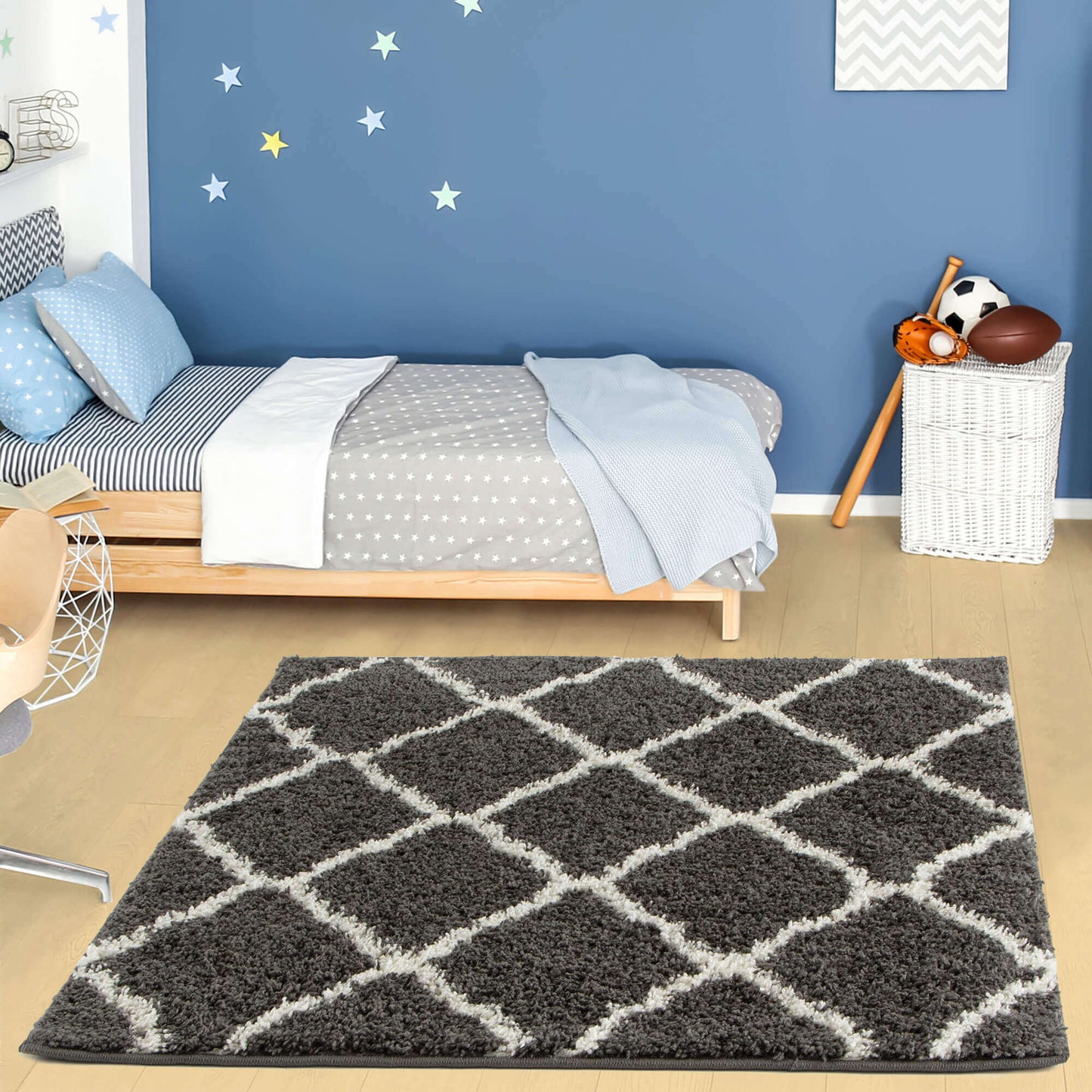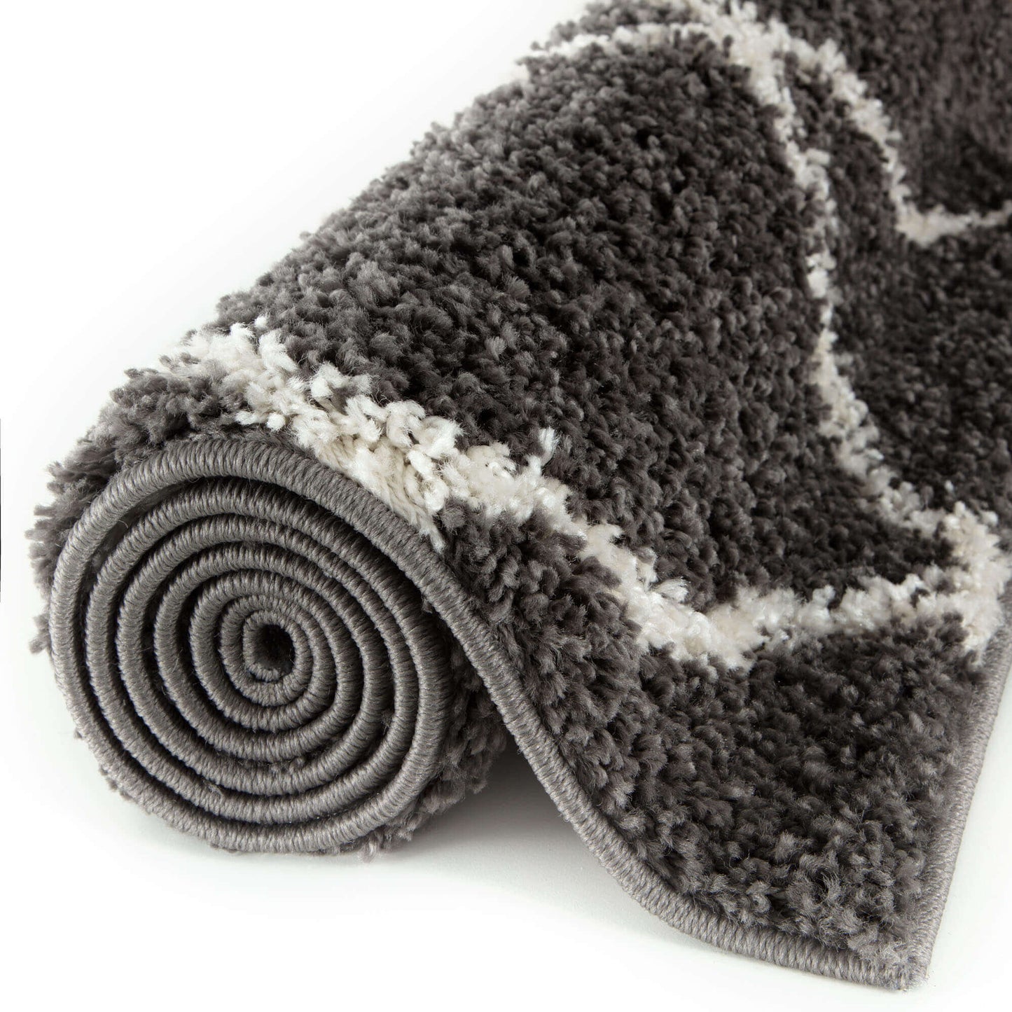 Moroccan Design Thick Shaggy Area Rugs Dark Grey has a pile height of 30mm and is thicker than other shaggy rugs. The design of the shaggy rug conveys an exquisite look and rich feel and a pleasing choice of patterns. This rug can easily suit any room, classic or modern.
