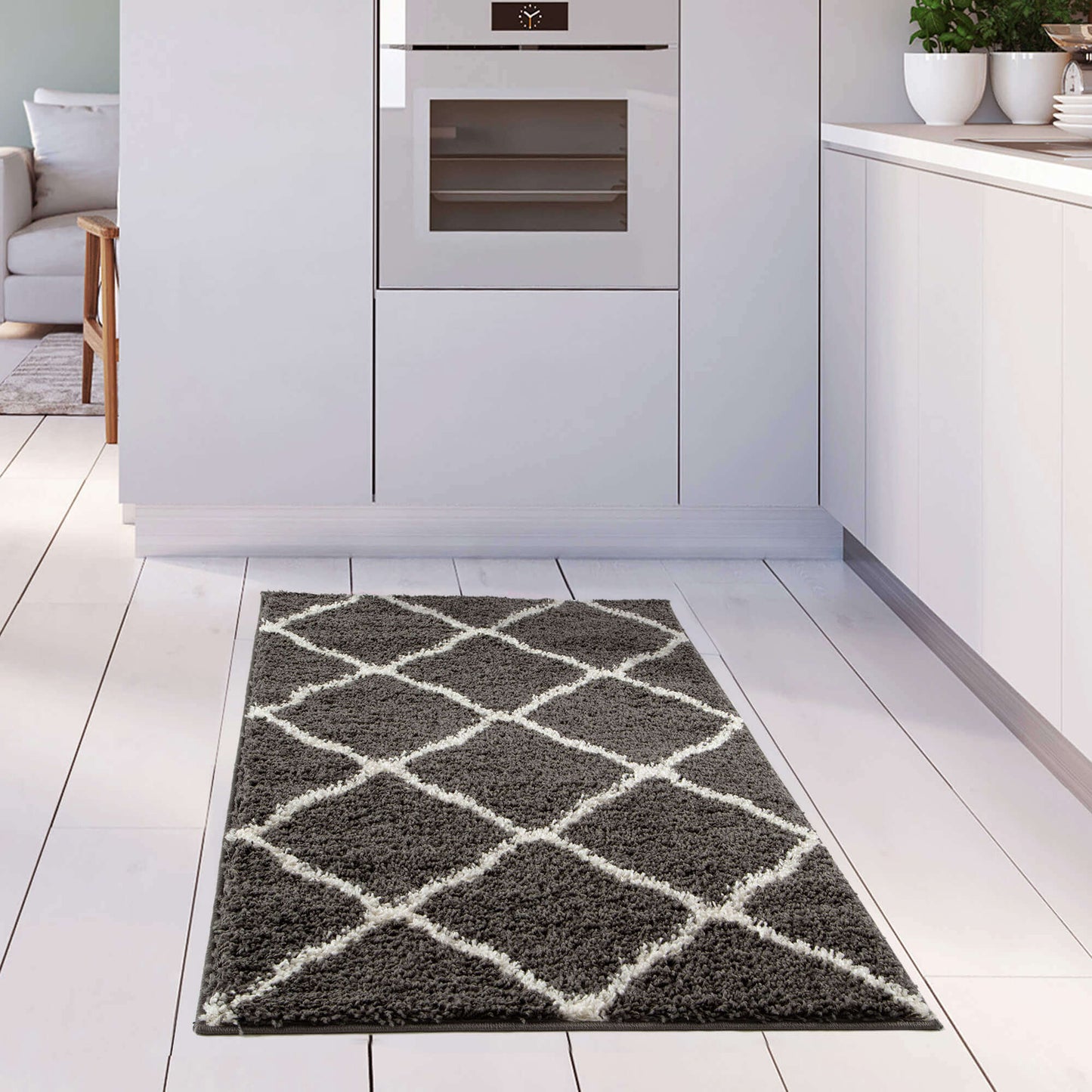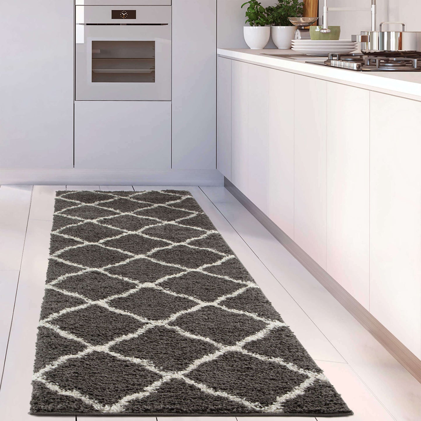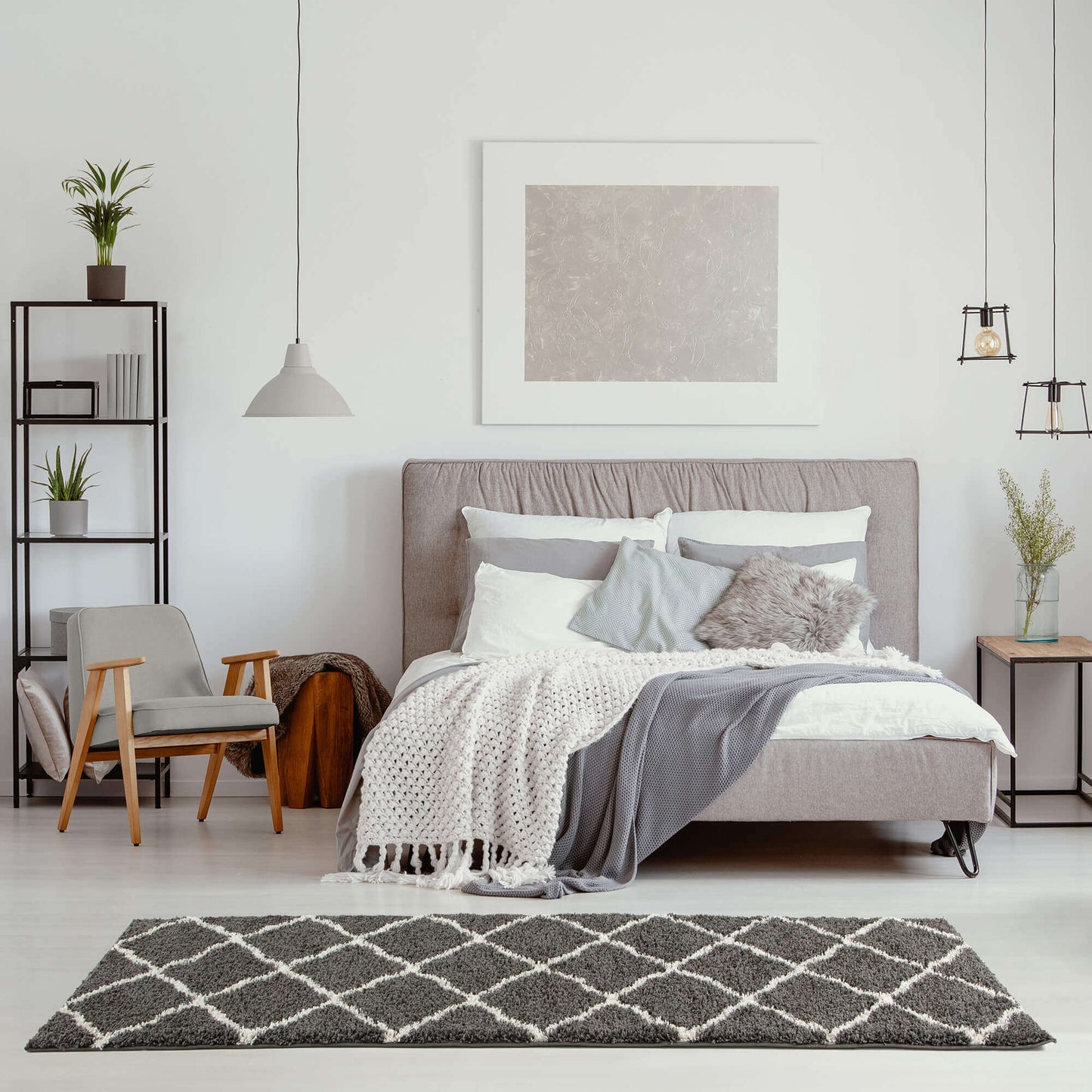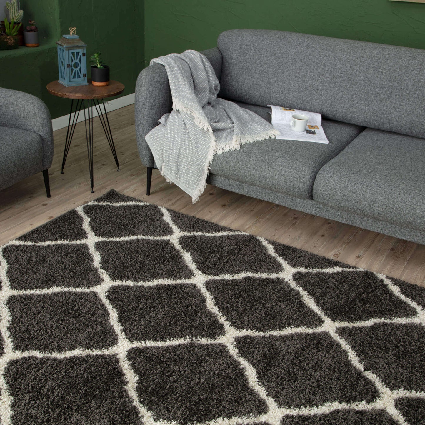 Moroccan Design Thick Shaggy Area Rugs Dark Grey has a pile height of 30mm and is thicker than other shaggy rugs. The design of the shaggy rug conveys an exquisite look and rich feel and a pleasing choice of patterns. This rug can easily suit any room, classic or modern.