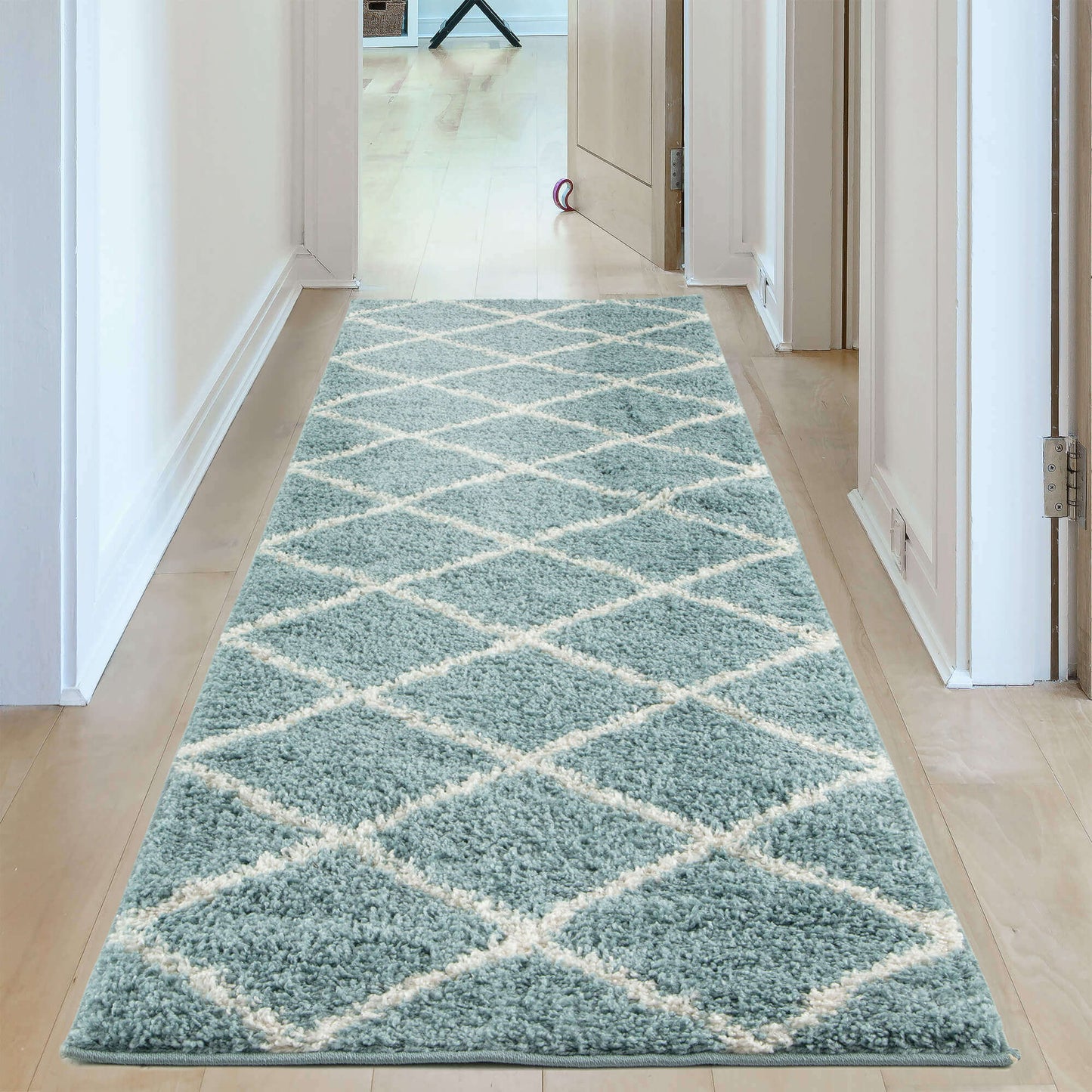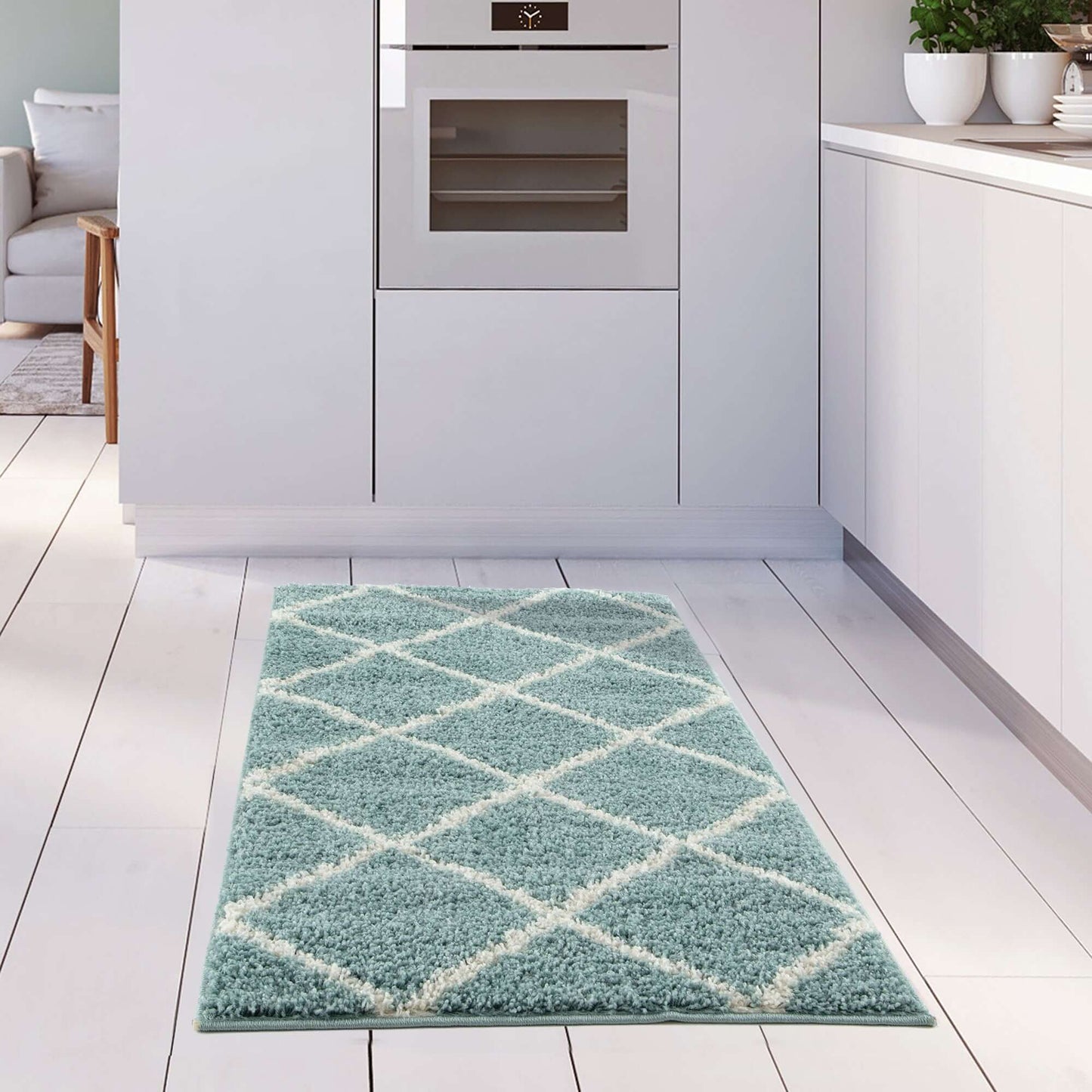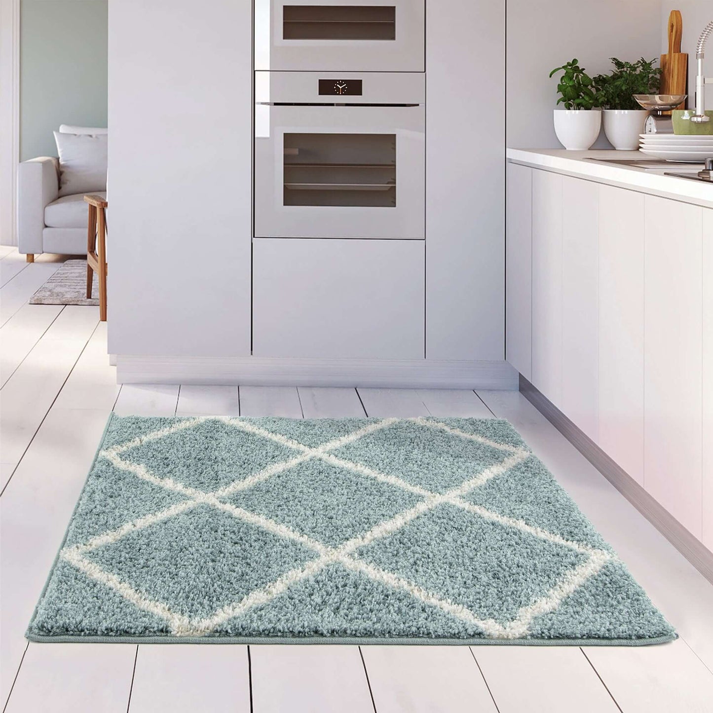 Regular price £22.99Diamond Design Thick Shaggy Area Rugs Duck Egg Blue is a top-notch luxury and high-quality shaggy rug. Soft 100% twisted fibre shaggy rugs are made from high-quality polypropylene also meaning it is totally non-shedding quality. A trendy natural look that gives a marvellous effect and dense pile.