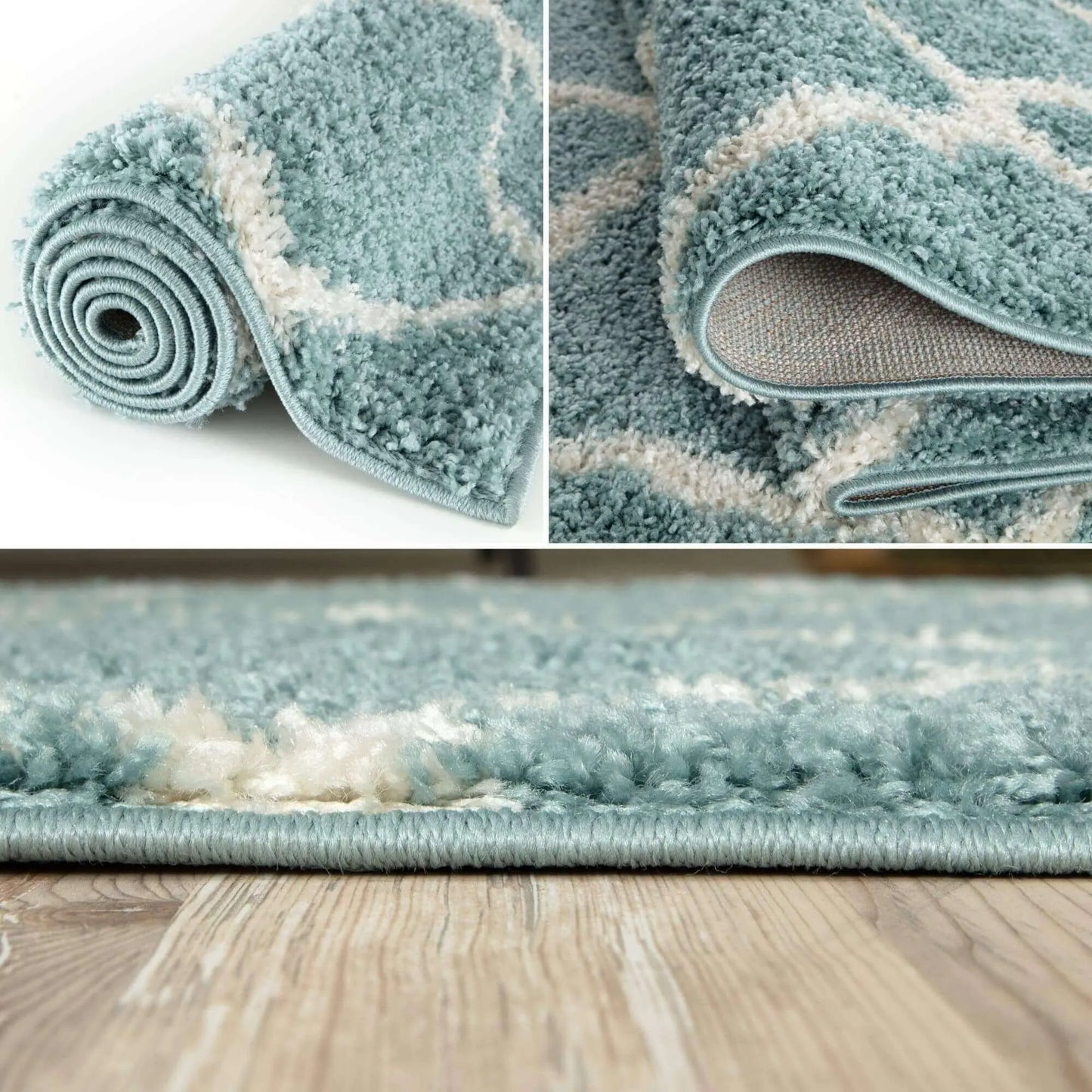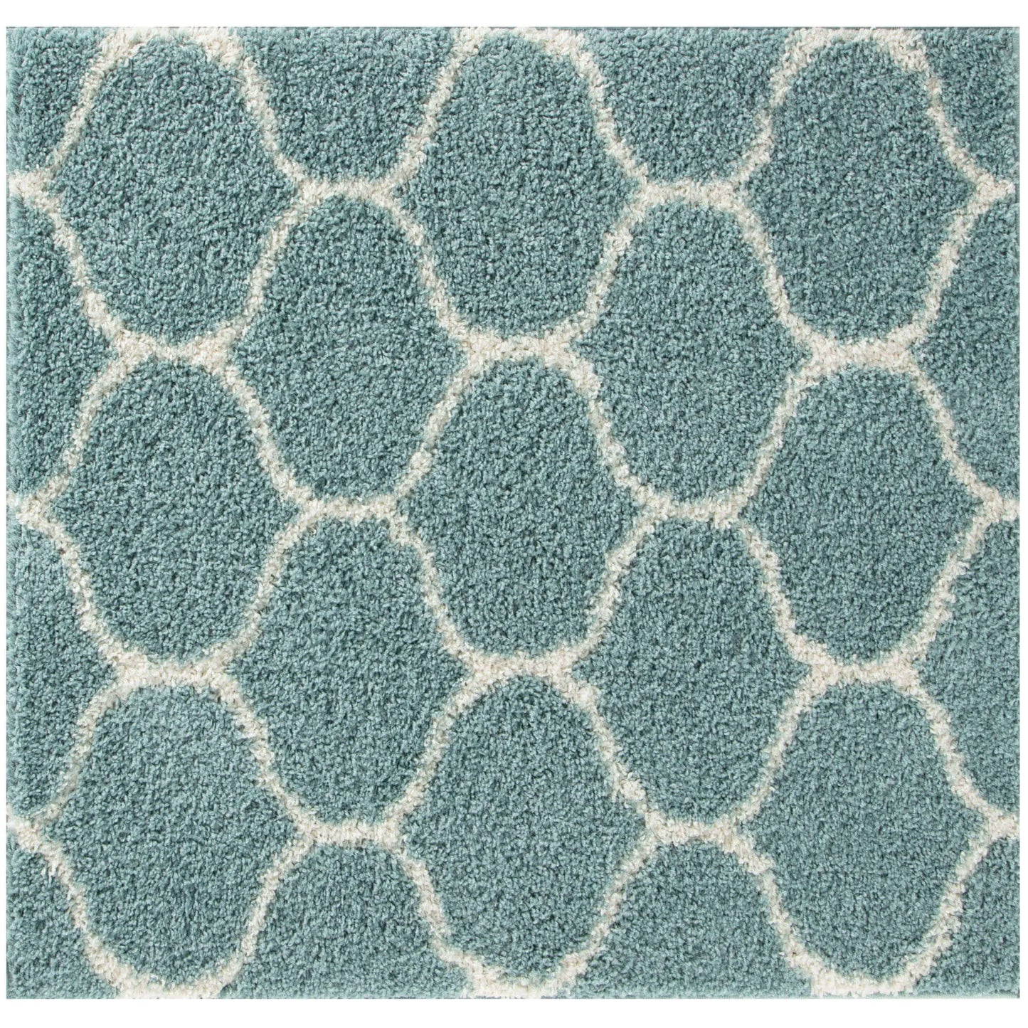 Trellis Design Thick Shaggy Area Rugs Duck Egg Blue has a pile height of 30mm and is thicker than other shaggy rugs. The design of the shaggy rug conveys an exquisite look and rich feel and a pleasing choice of patterns. This rug can easily suit any room, classic or modern.