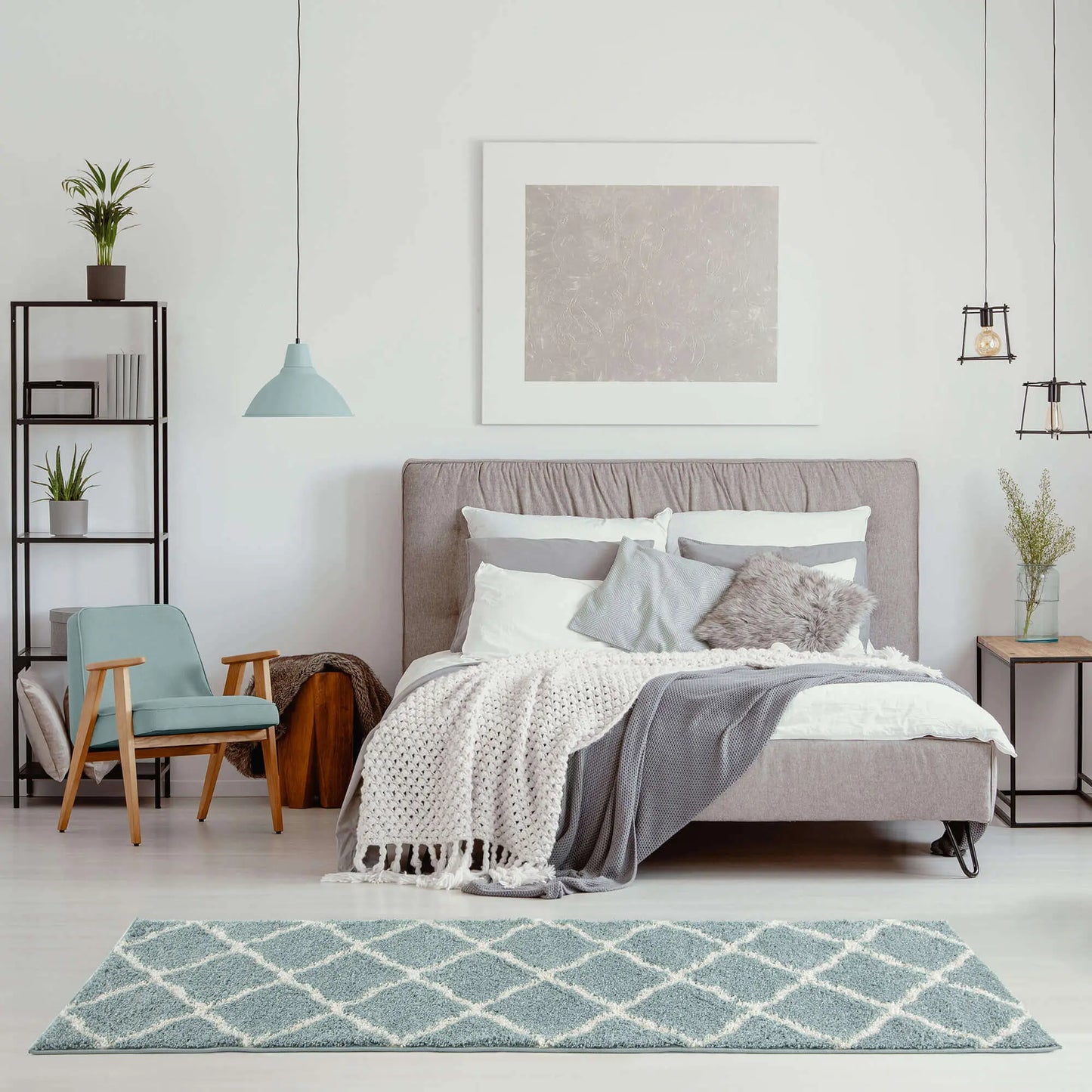 Trellis Design Thick Shaggy Area Rugs Duck Egg Blue is a top-notch luxury and high-quality shaggy rug. It makes you feel like walking on clouds with soft piles. Soft 100% twisted fibre shaggy rugs are made from high-quality polypropylene also meaning it is totally non-shedding quality. A trendy natural look that gives a marvellous effect and dense pile.