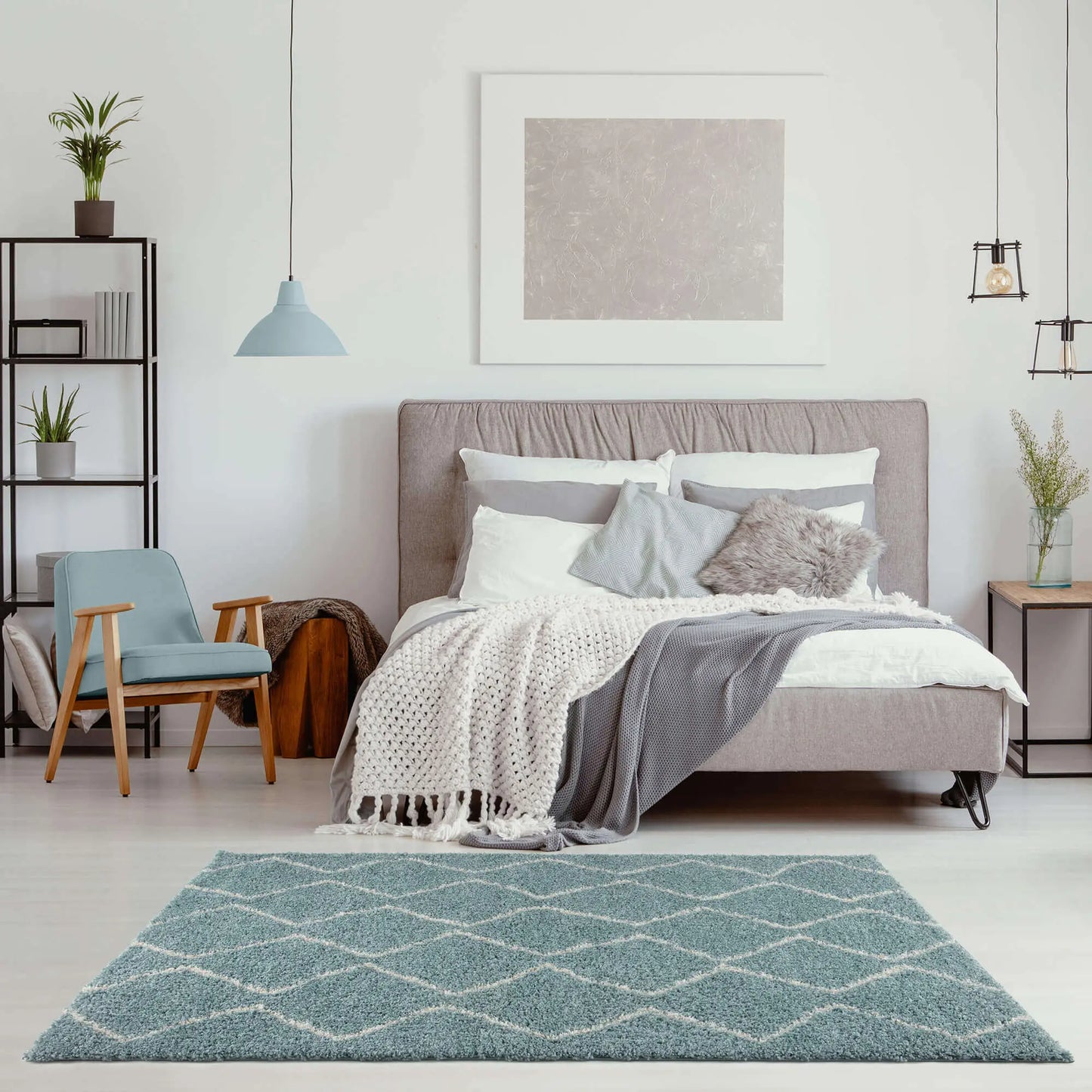 Moroccan Duck Egg Blue Shaggy Rug | 850