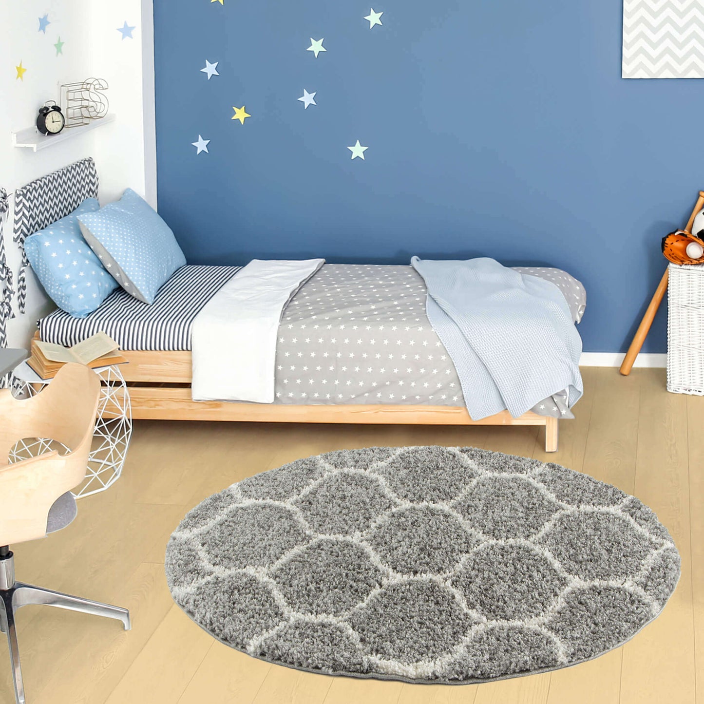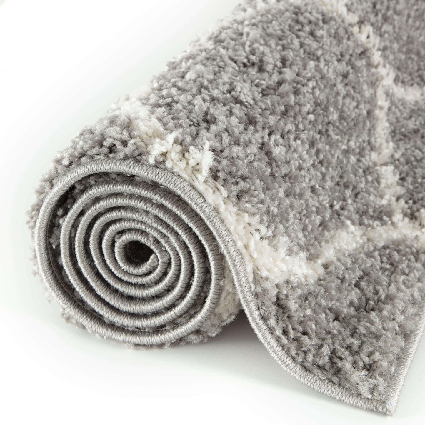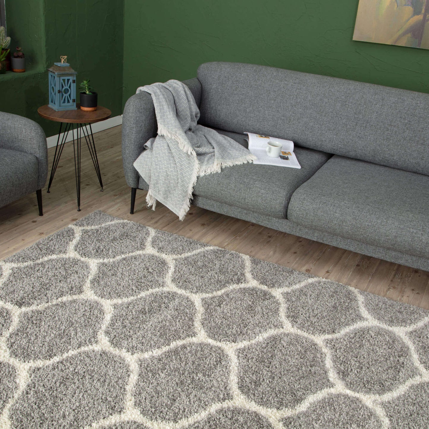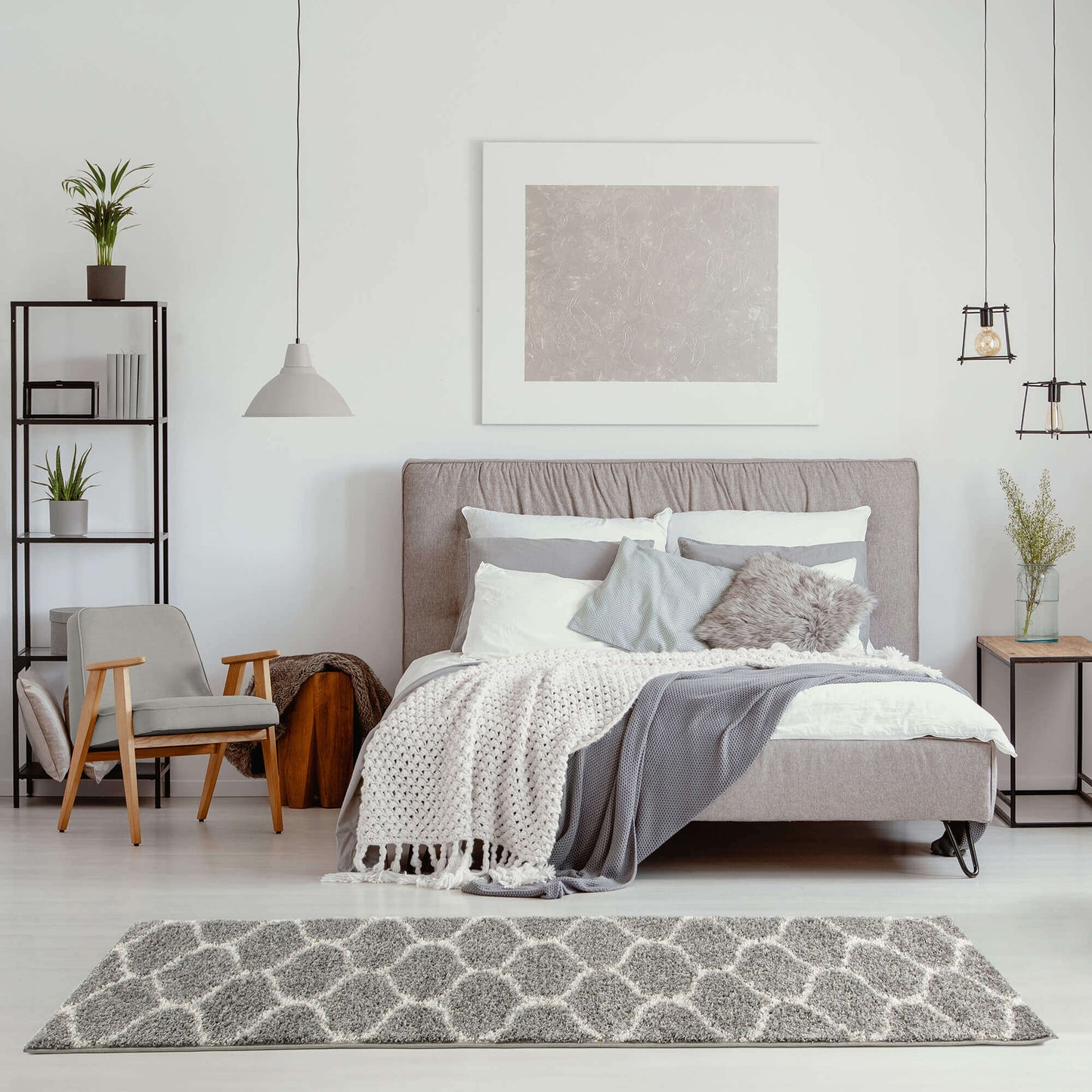 Trellis Design Thick Shaggy Area Rugs Grey has a pile height of 30mm and is thicker than other shaggy rugs. The design of the shaggy rug conveys an exquisite look and rich feel and a pleasing choice of patterns. This rug can easily suit any room, classic or modern.