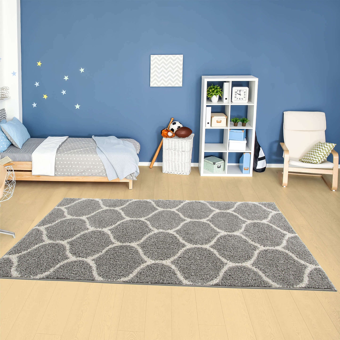 Trellis Design Thick Shaggy Area Rugs Grey is a top-notch luxury and high-quality shaggy rug. It makes you feel like walking on clouds with soft piles. Soft 100% twisted fibre shaggy rugs are made from high-quality polypropylene also meaning it is totally non-shedding quality. A trendy natural look that gives a marvellous effect and dense pile.