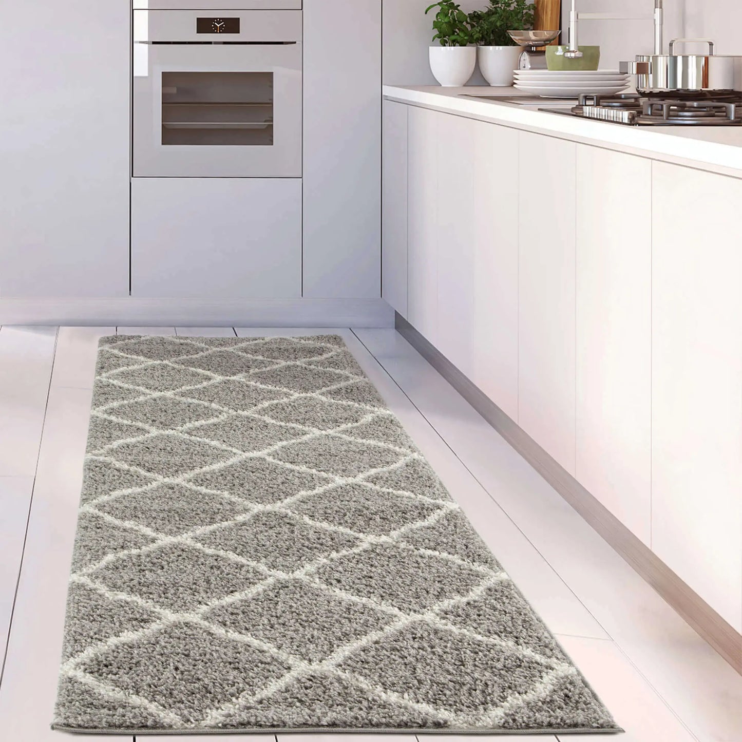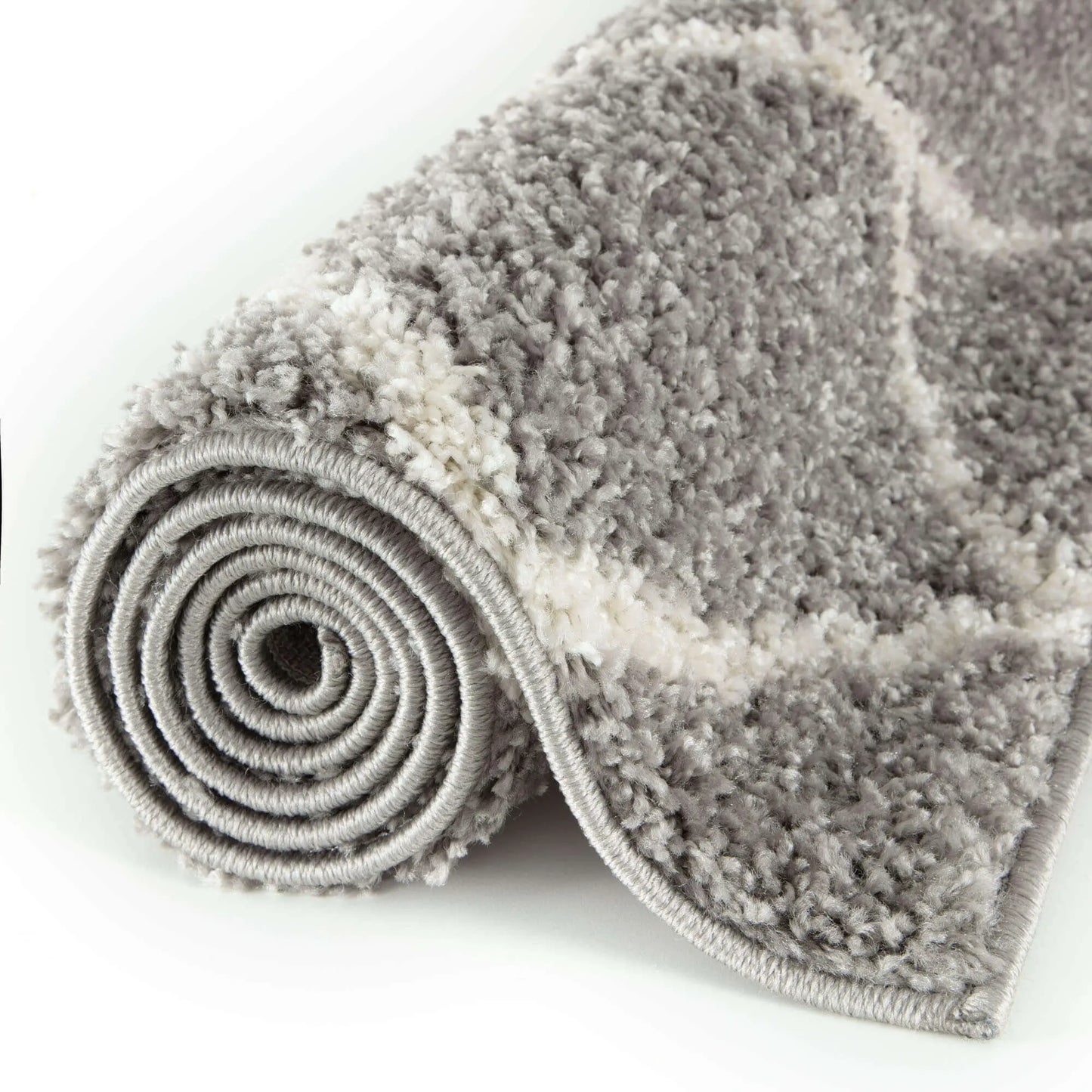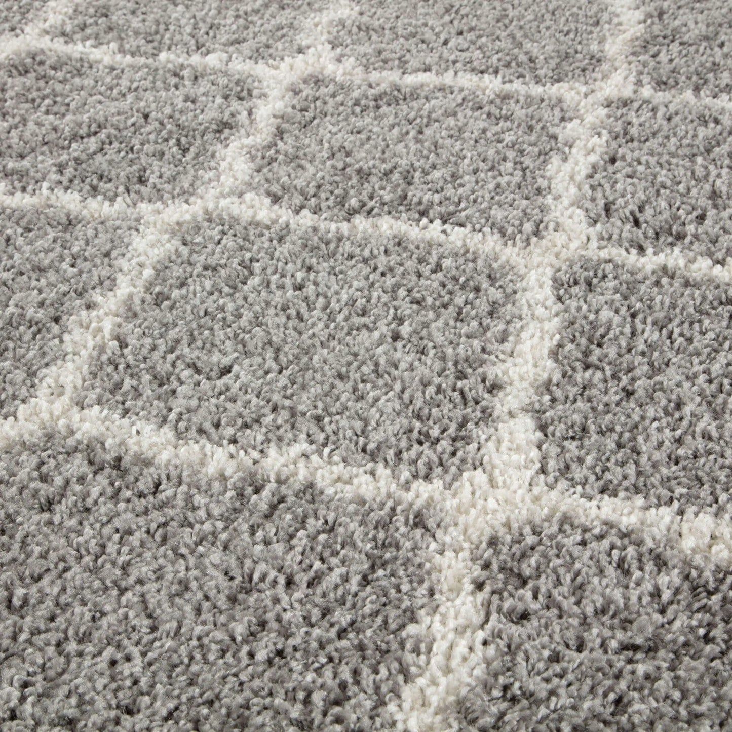 Moroccan Design Thick Shaggy Area Rugs Grey has a pile height of 30mm and is thicker than other shaggy rugs. The design of the shaggy rug conveys an exquisite look and rich feel and a pleasing choice of patterns. This rug can easily suit any room, classic or modern.