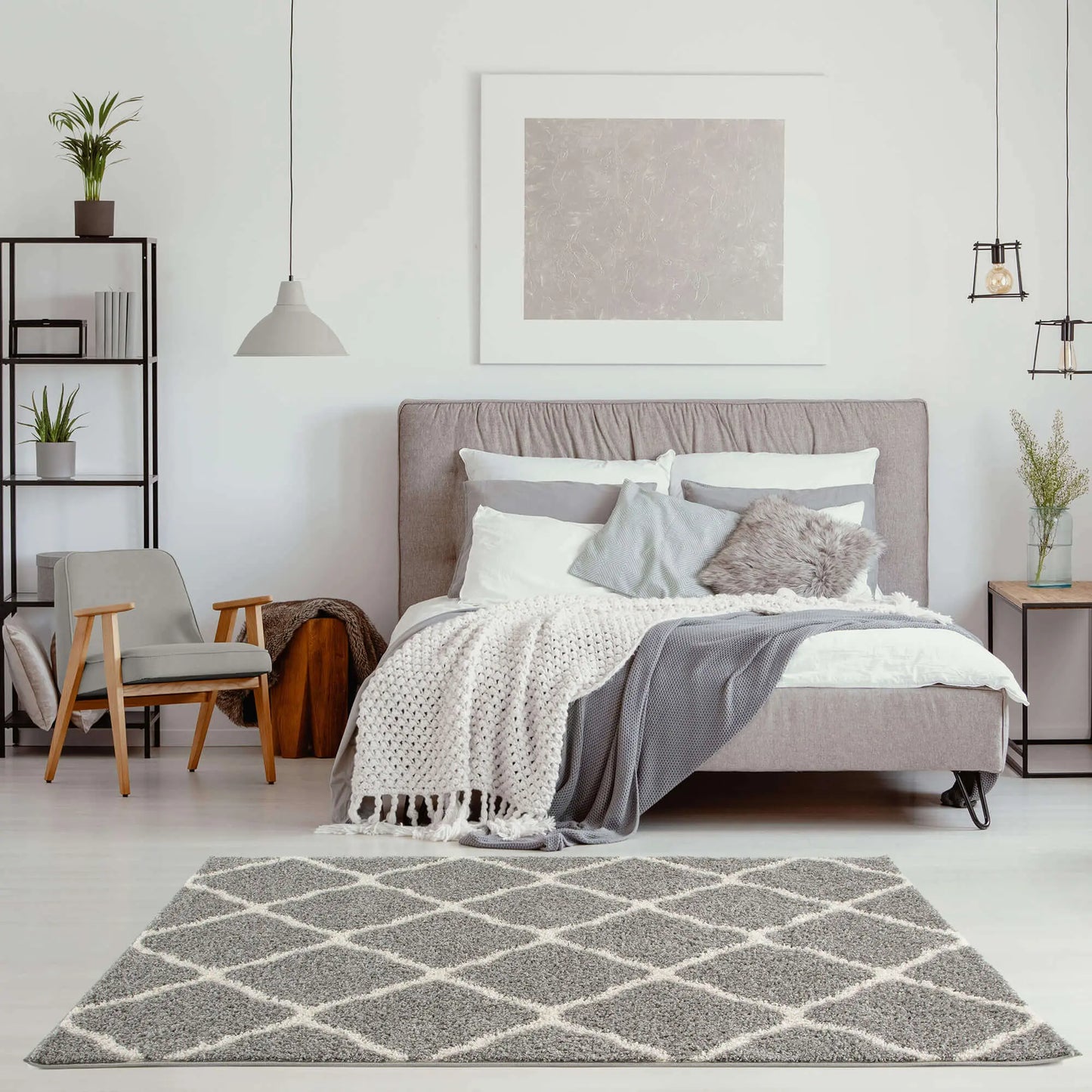 Regular price £11.89Moroccan Design Thick Shaggy Area Rugs Grey is a top-notch luxury and high-quality shaggy rug. Soft 100% twisted fibre shaggy rugs are made from high-quality polypropylene also meaning it is totally non-shedding quality. A trendy natural look that gives a marvellous effect and dense pile.