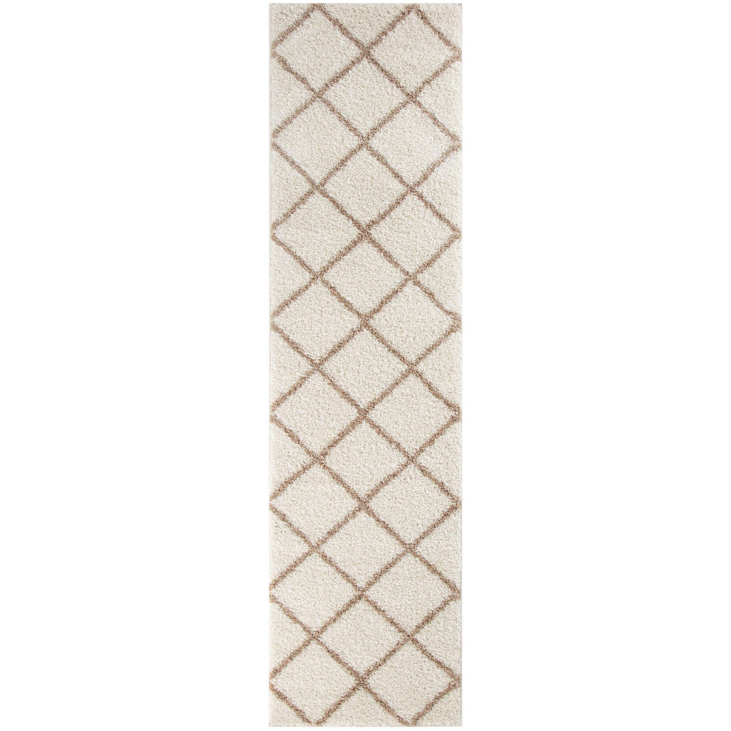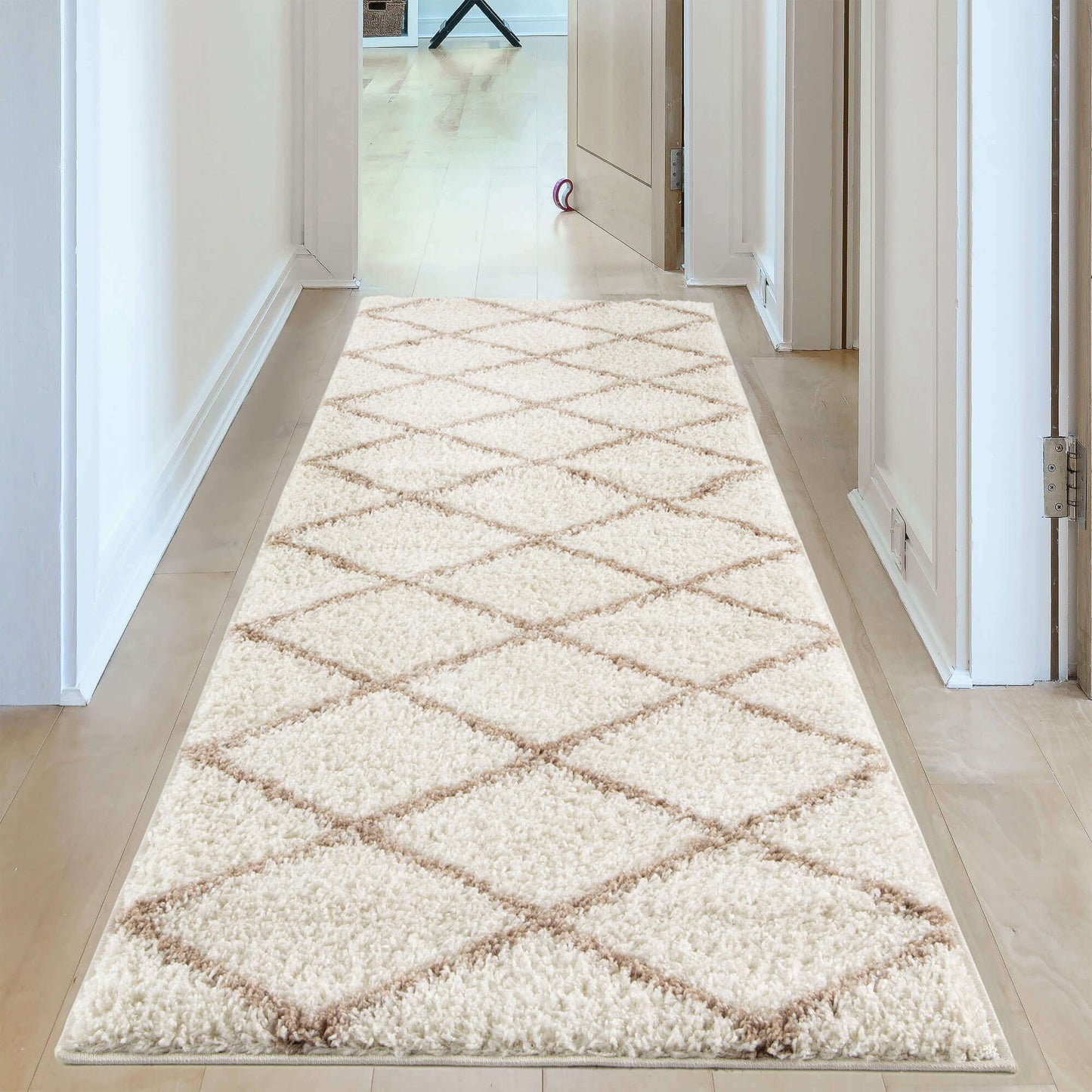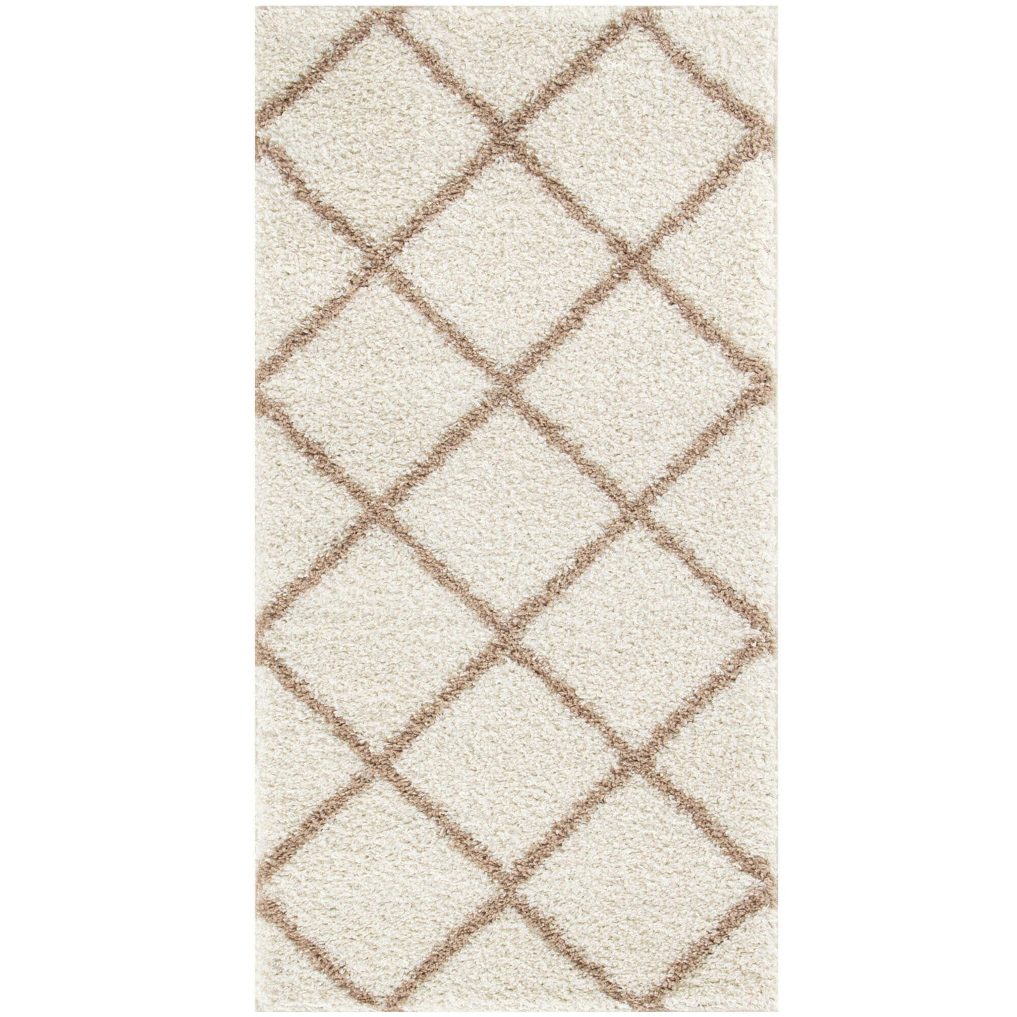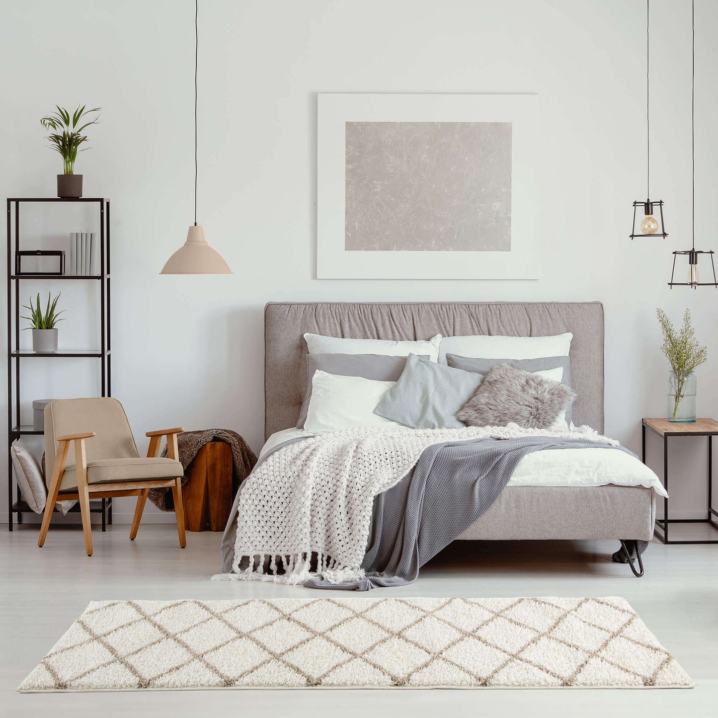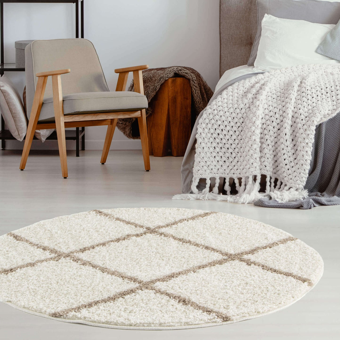 Diamond Design Thick Shaggy Area Rugs Ivory Beige has a pile height of 30mm and is thicker than other shaggy rugs. The design of the shaggy rug conveys an exquisite look and rich feel and a pleasing choice of patterns. This rug can easily suit any room, classic or modern.