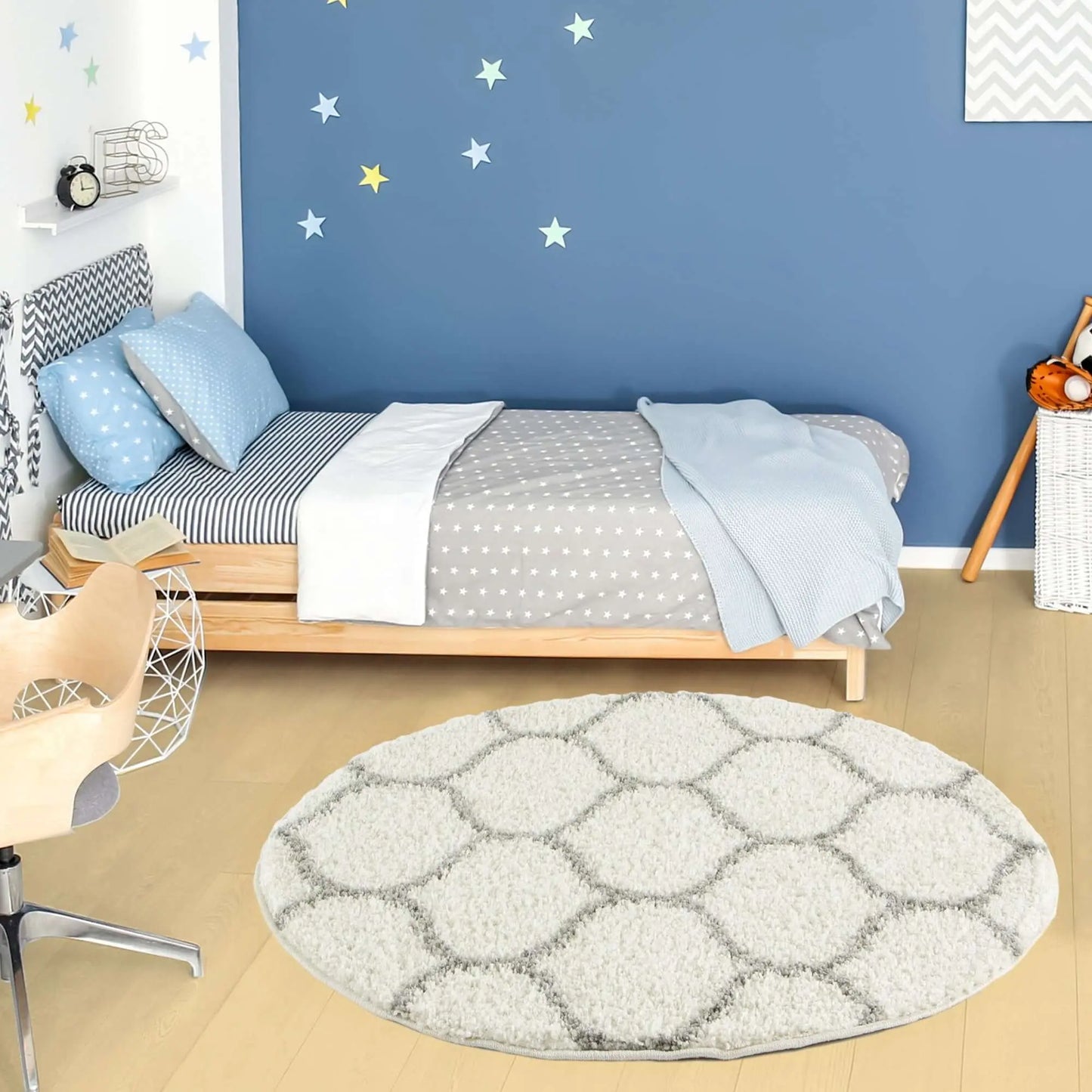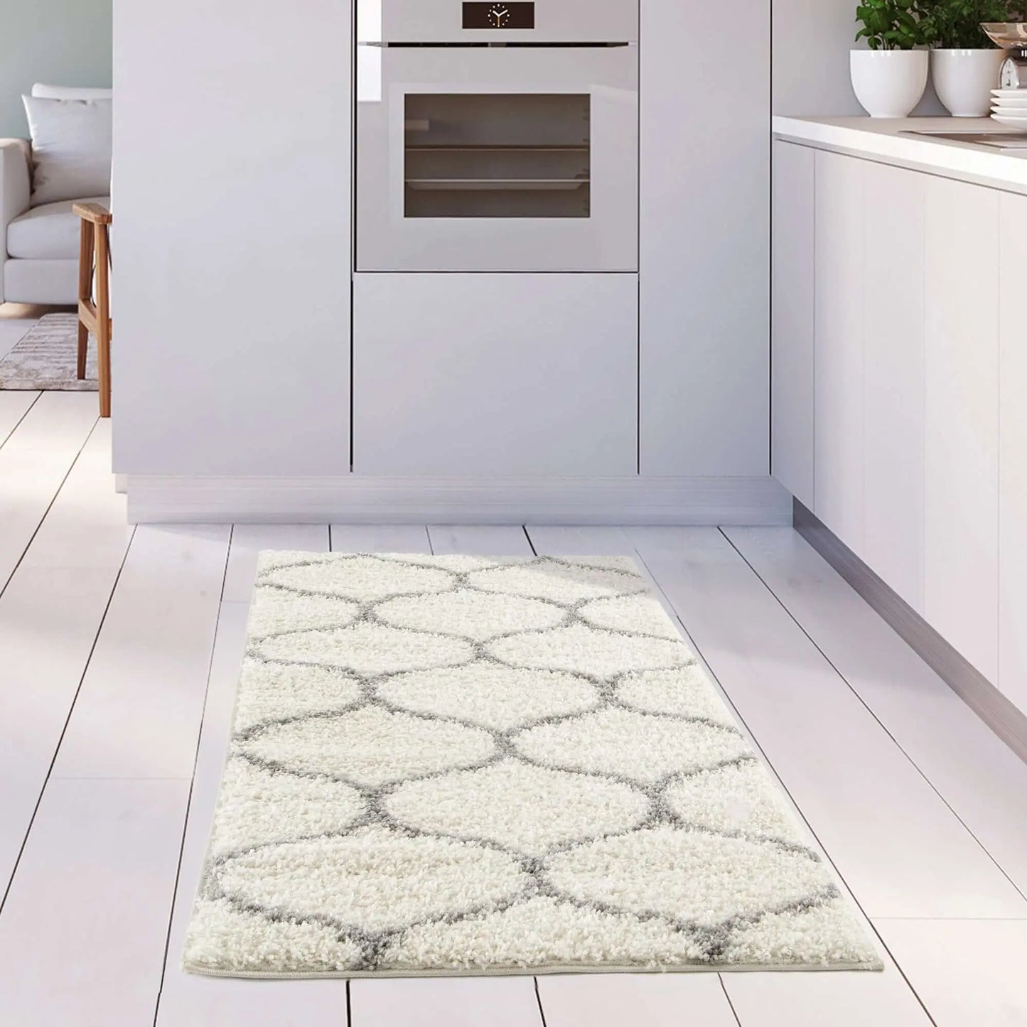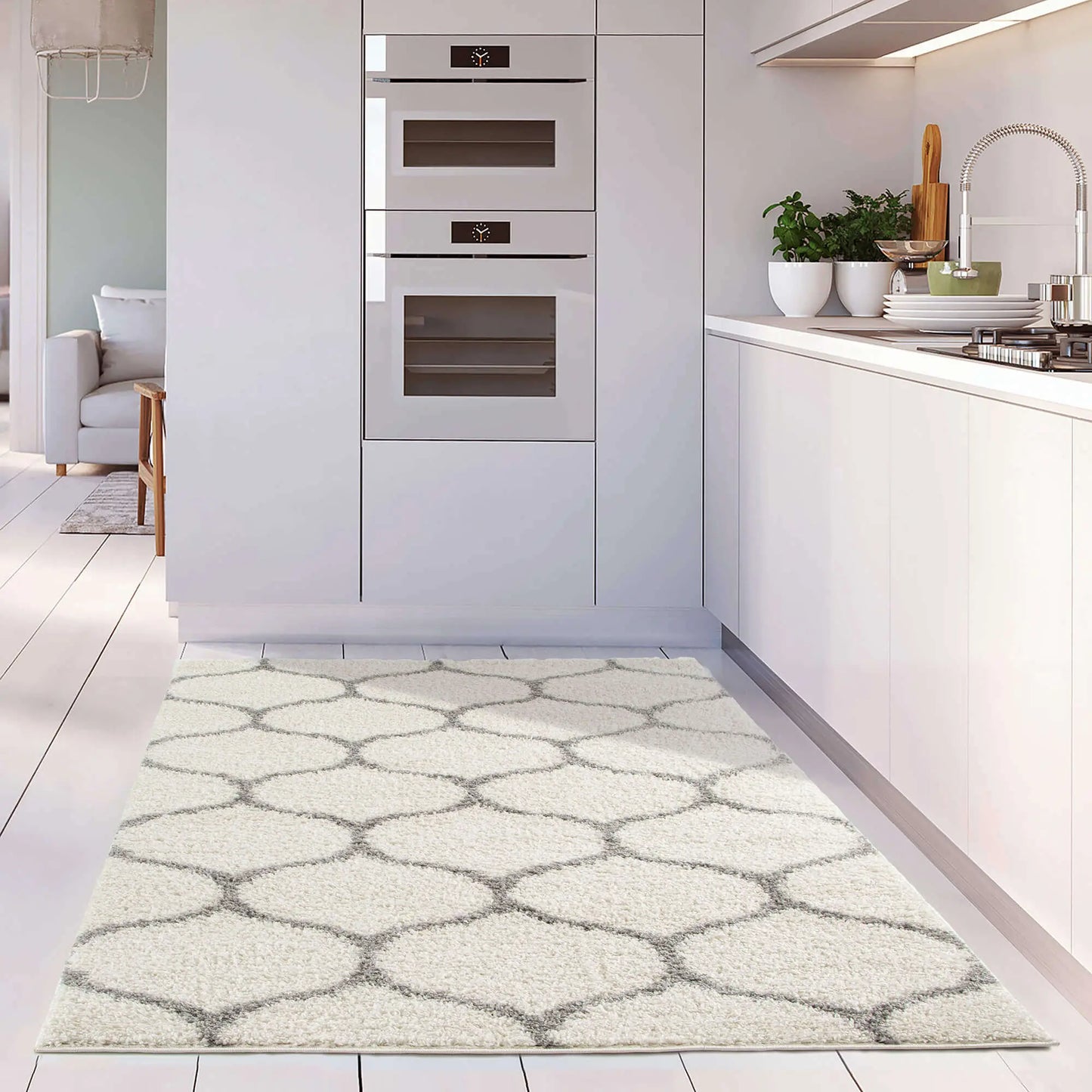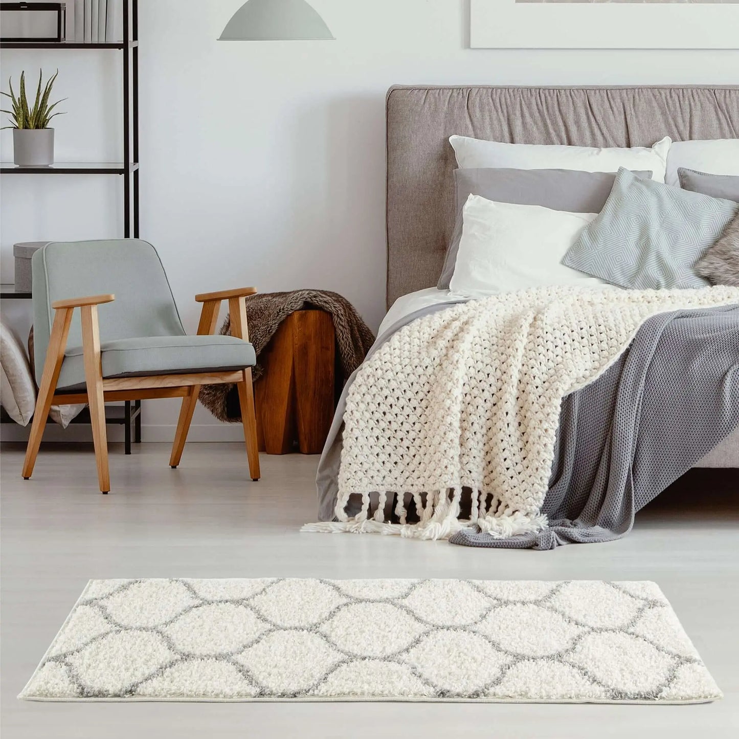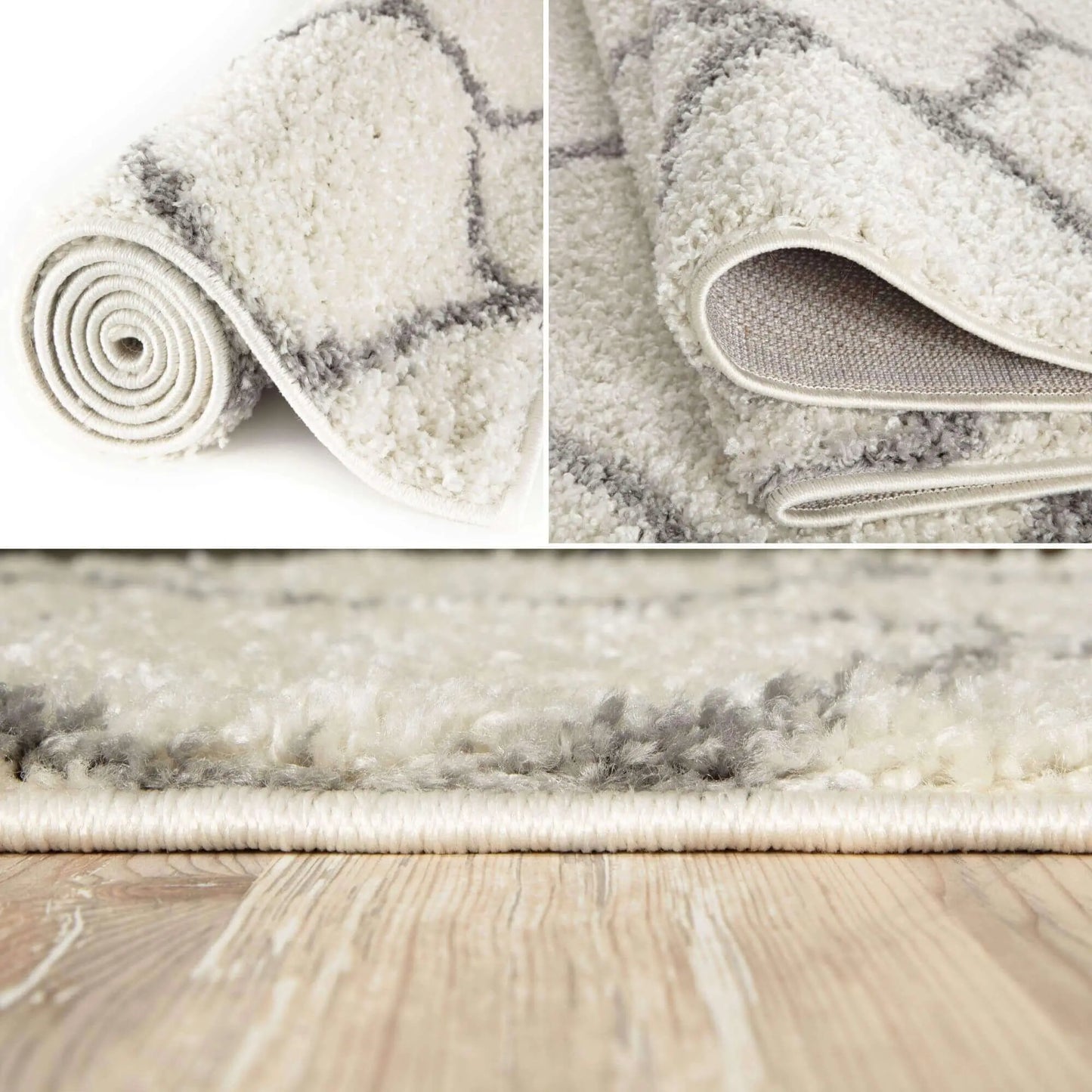 Trellis Design Thick Shaggy Area Rugs Ivory has a pile height of 30mm and is thicker than other shaggy rugs. The design of the shaggy rug conveys an exquisite look and rich feel and a pleasing choice of patterns. This rug can easily suit any room, classic or modern.