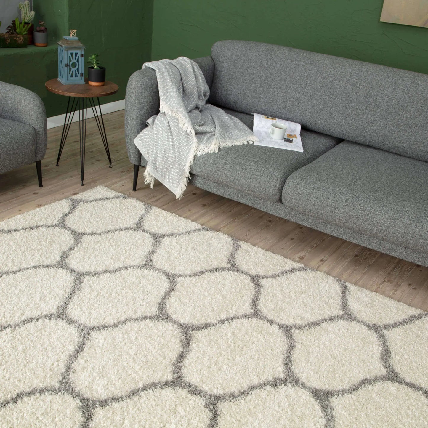 Trellis Design Thick Shaggy Area Rugs Ivory is a top-notch luxury and high-quality shaggy rug. It makes you feel like walking on clouds with soft piles. Soft 100% twisted fibre shaggy rugs are made from high-quality polypropylene also meaning it is totally non-shedding quality. A trendy natural look that gives a marvellous effect and dense pile.