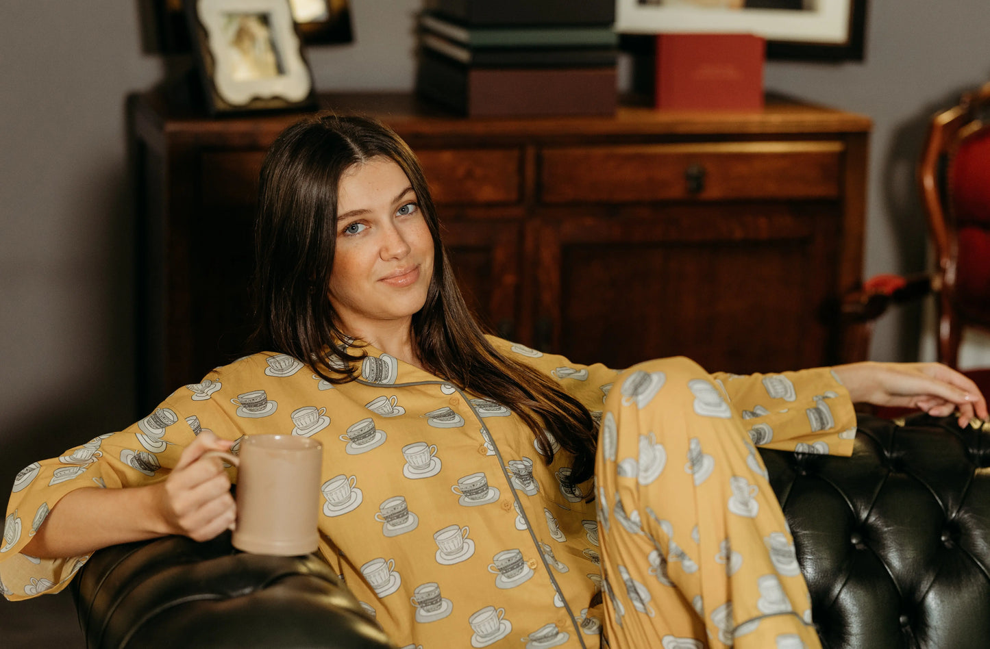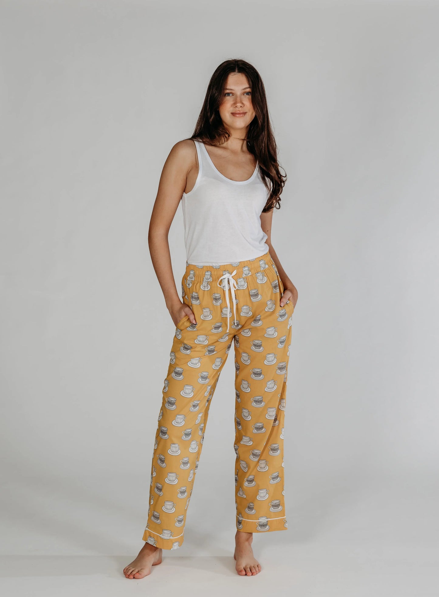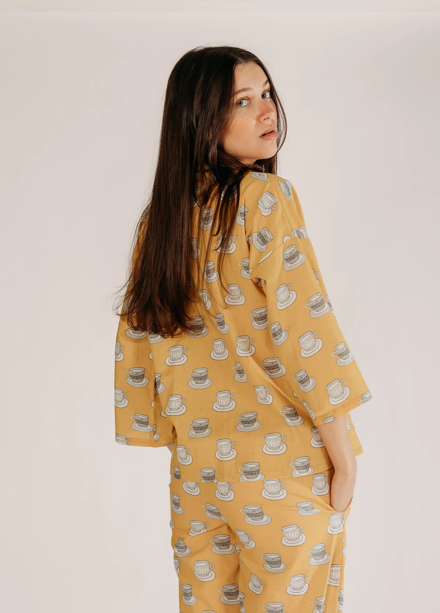 Inspiration taken from our ever loving love for tea!! This cutest cup and saucer print was hand drawn, Whether you are looking a gift for someone special or just a treat to wind down after a long day, our pyjamas are the perfect way to add a little bit of luxury to your evening routine.