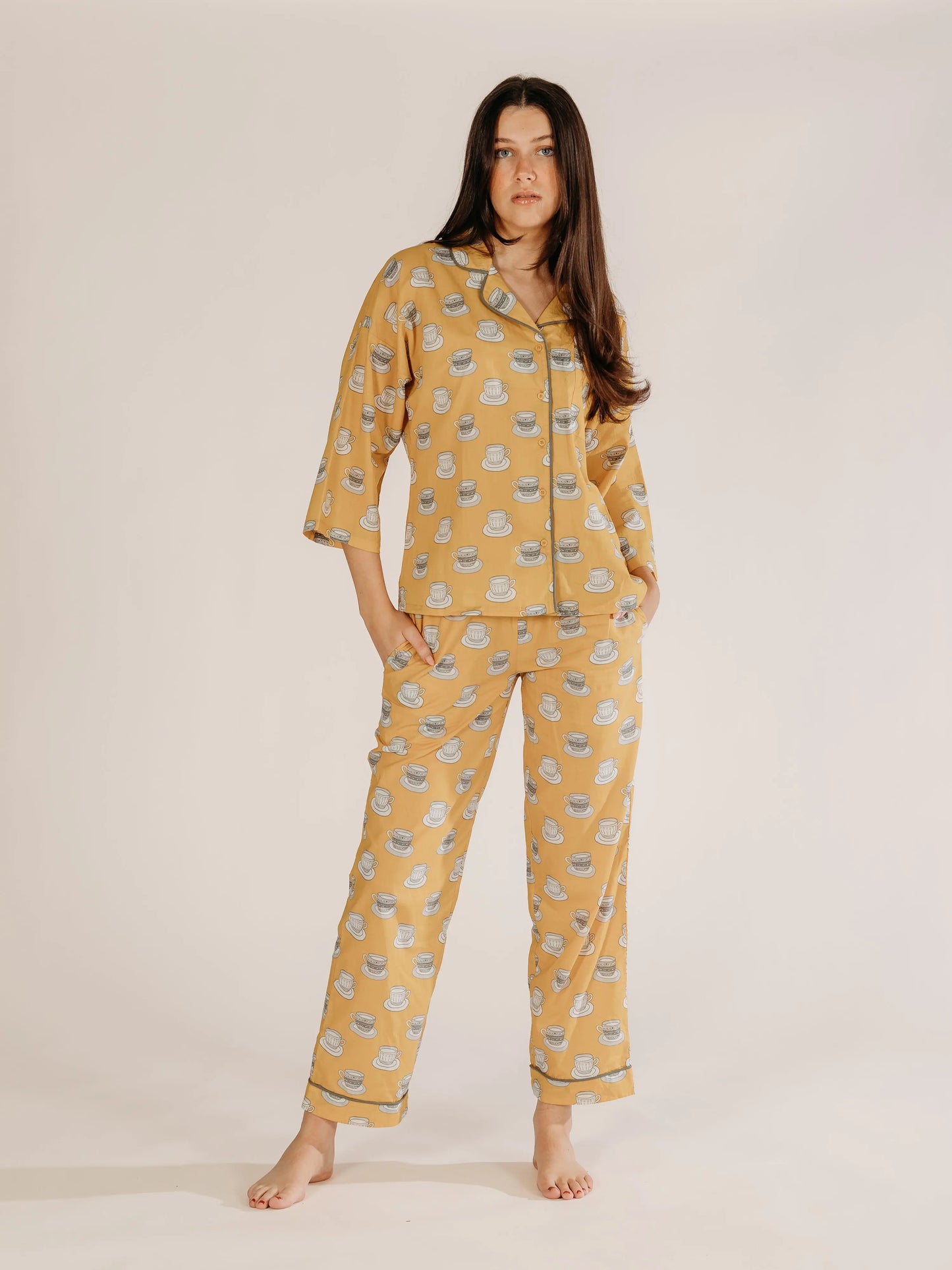 Mustard Chai Print Pyjamas