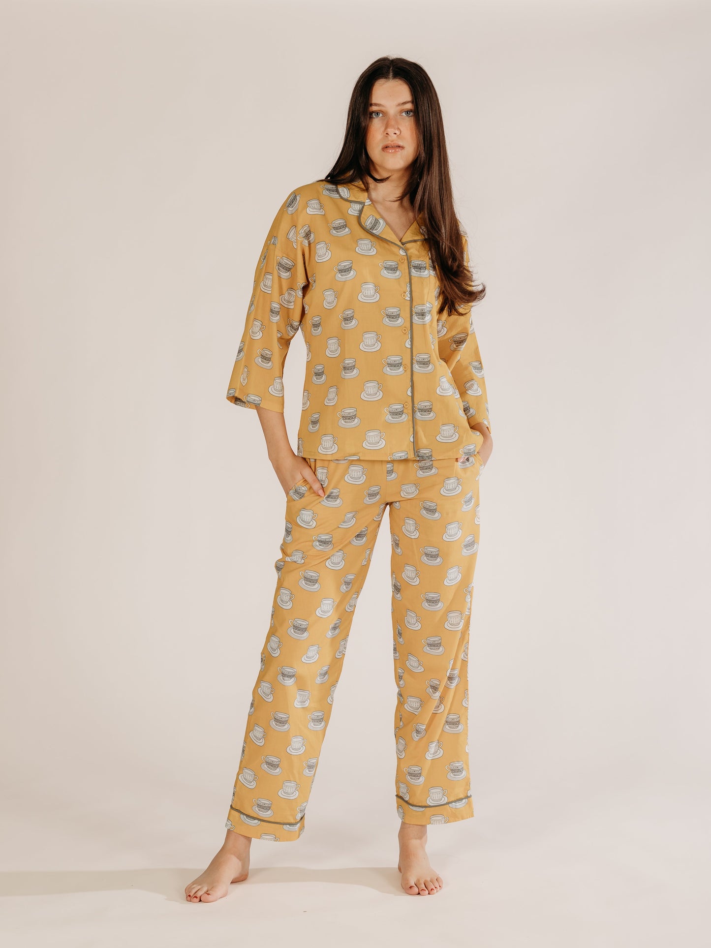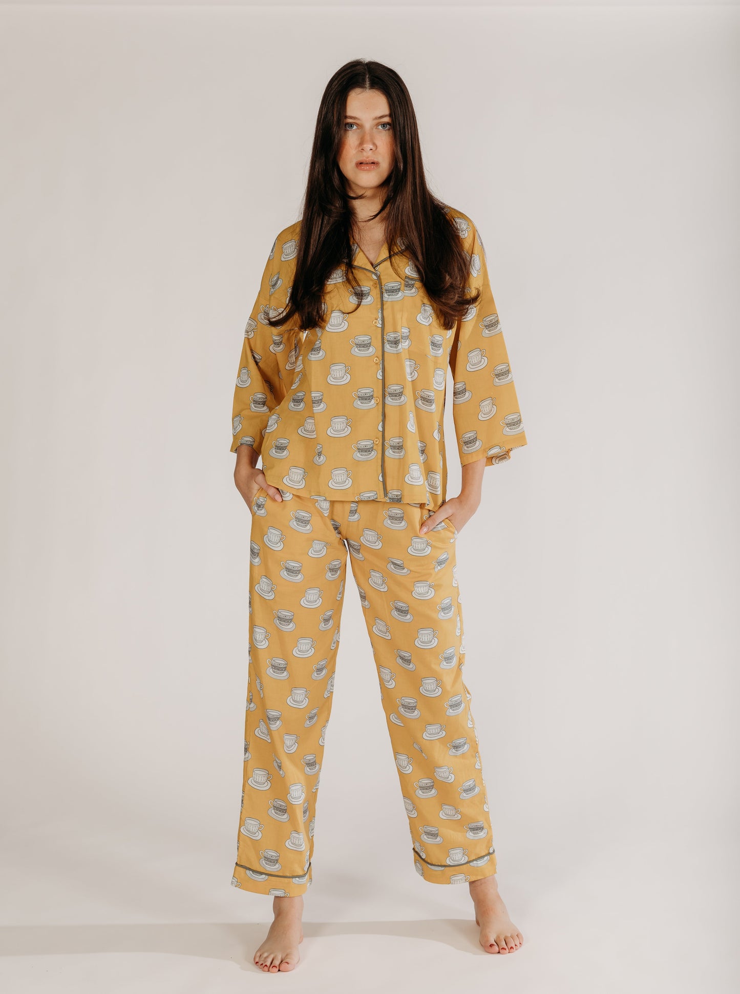 Regular price £40.00Inspiration taken from our ever loving love for tea!! This cutest cup and saucer print was hand drawn, Whether you are looking a gift for someone special or just a treat to wind down after a long day, our pyjamas are the perfect way to add a little bit of luxury to your evening routine.