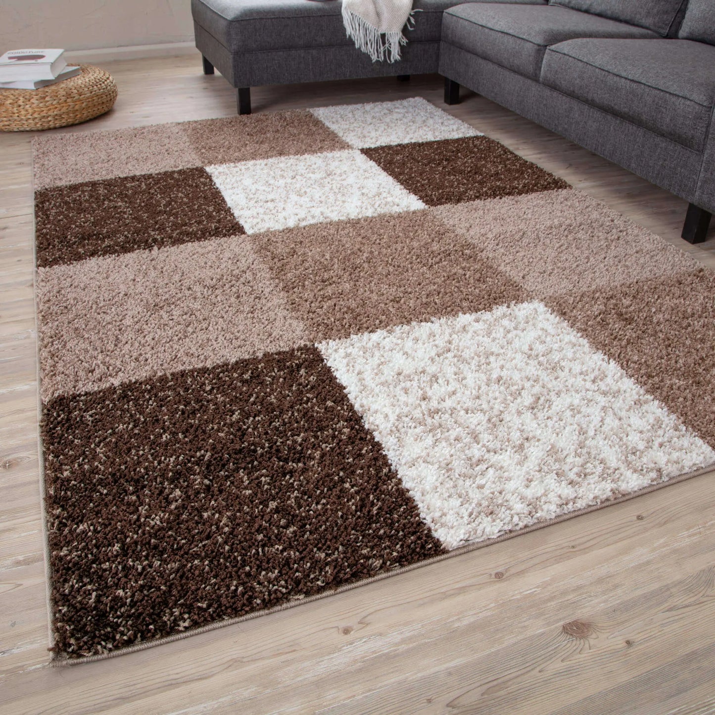 Premium Shaggy Rug Geometric Design Brown is a top-notch luxury and high-quality shaggy rug. Soft 100% twisted fibre shaggy rugs are made from high-quality polypropylene also meaning it is totally non-shedding quality. A natural trendy look that gives a marvellous effect and dense pile.