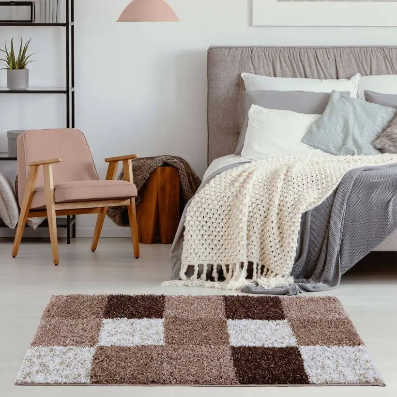 Regular price £12.00Premium Shaggy Rug Geometric Design Brown is a top-notch luxury and high-quality shaggy rug. Soft 100% twisted fibre shaggy rugs are made from high-quality polypropylene also meaning it is totally non-shedding quality. A natural trendy look that gives a marvellous effect and dense pile.