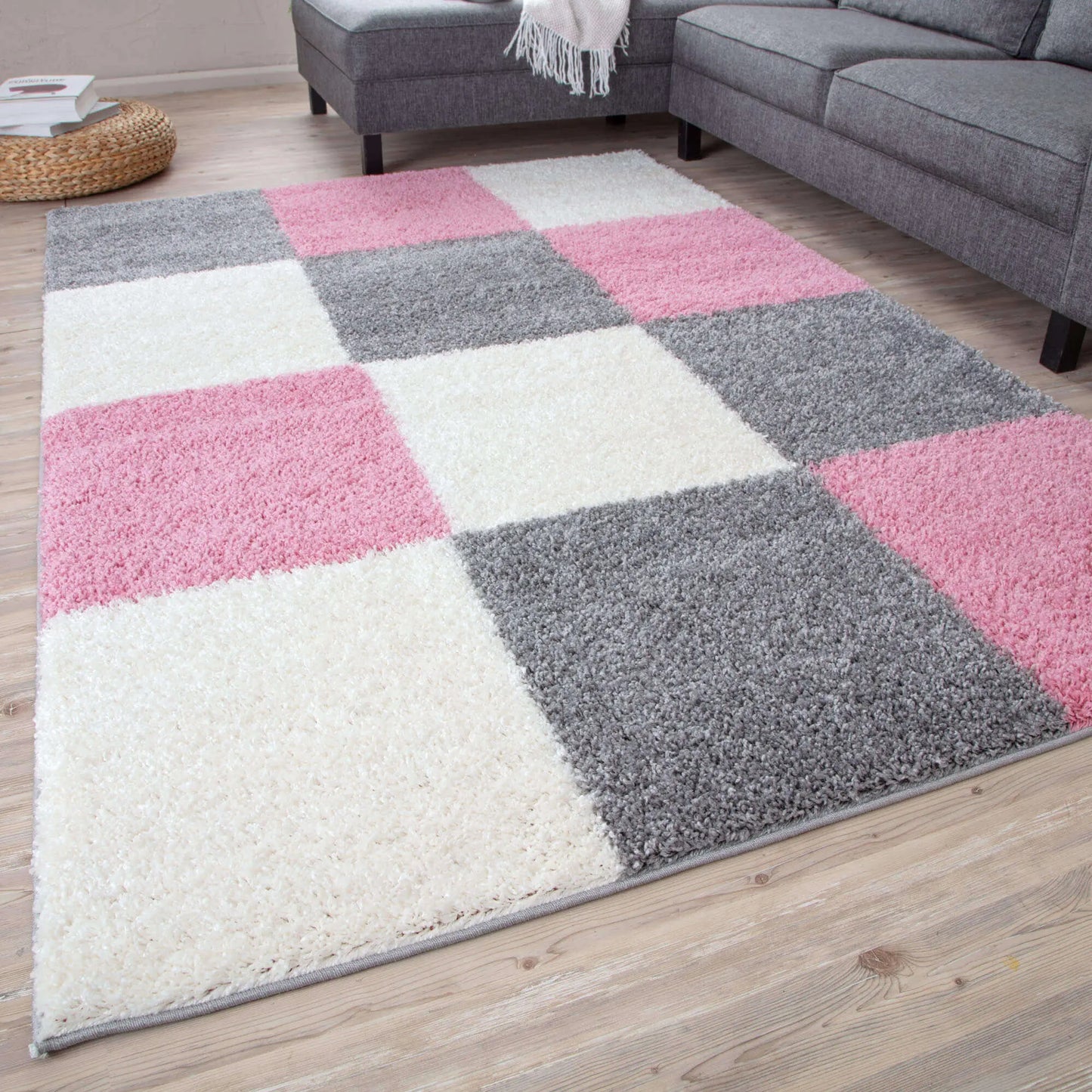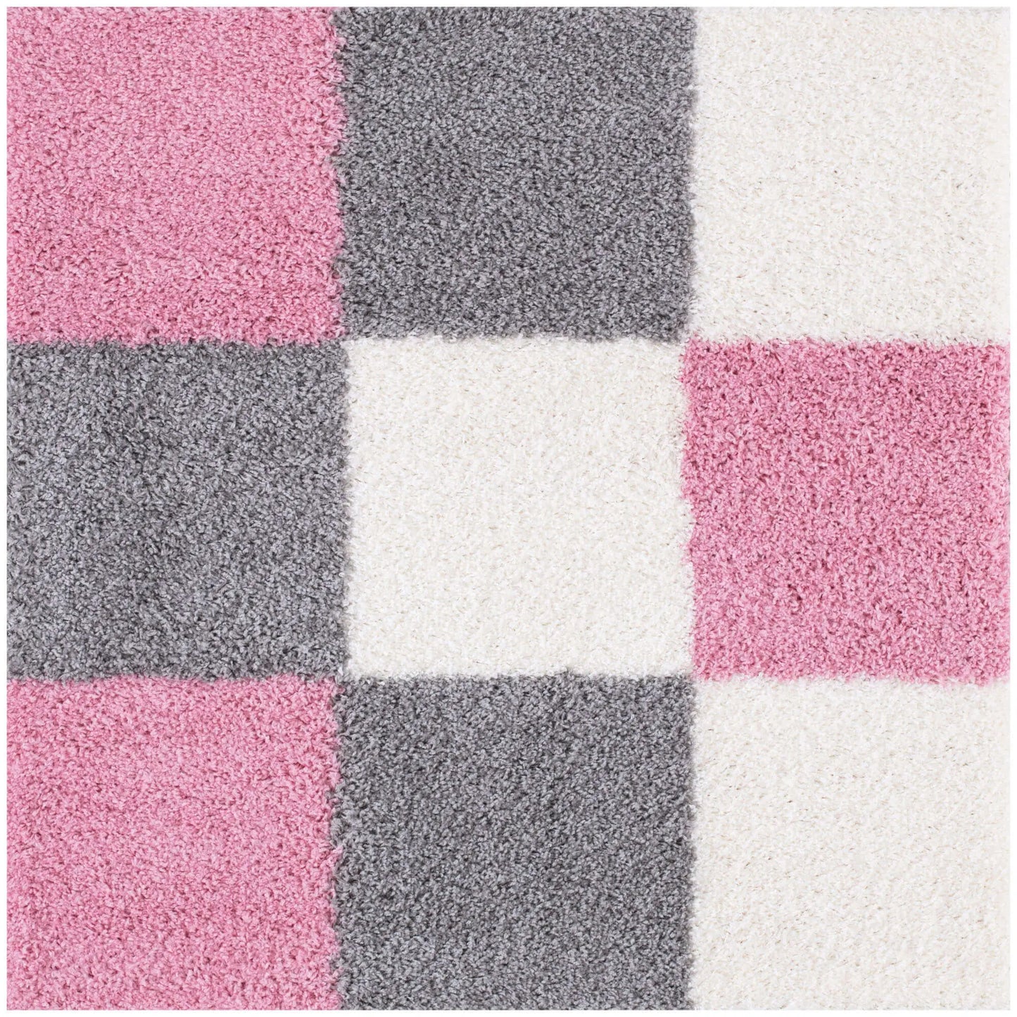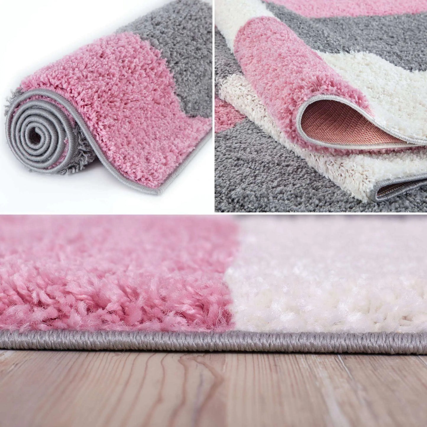 Geometric Design Thick Shaggy Area Rugs Pink has a pile height of 30mm and is thicker than other shaggy rugs. The design of the shaggy rug conveys an exquisite look and rich feel and a pleasing choice of patterns. This rug can easily suit any room, classic or modern.